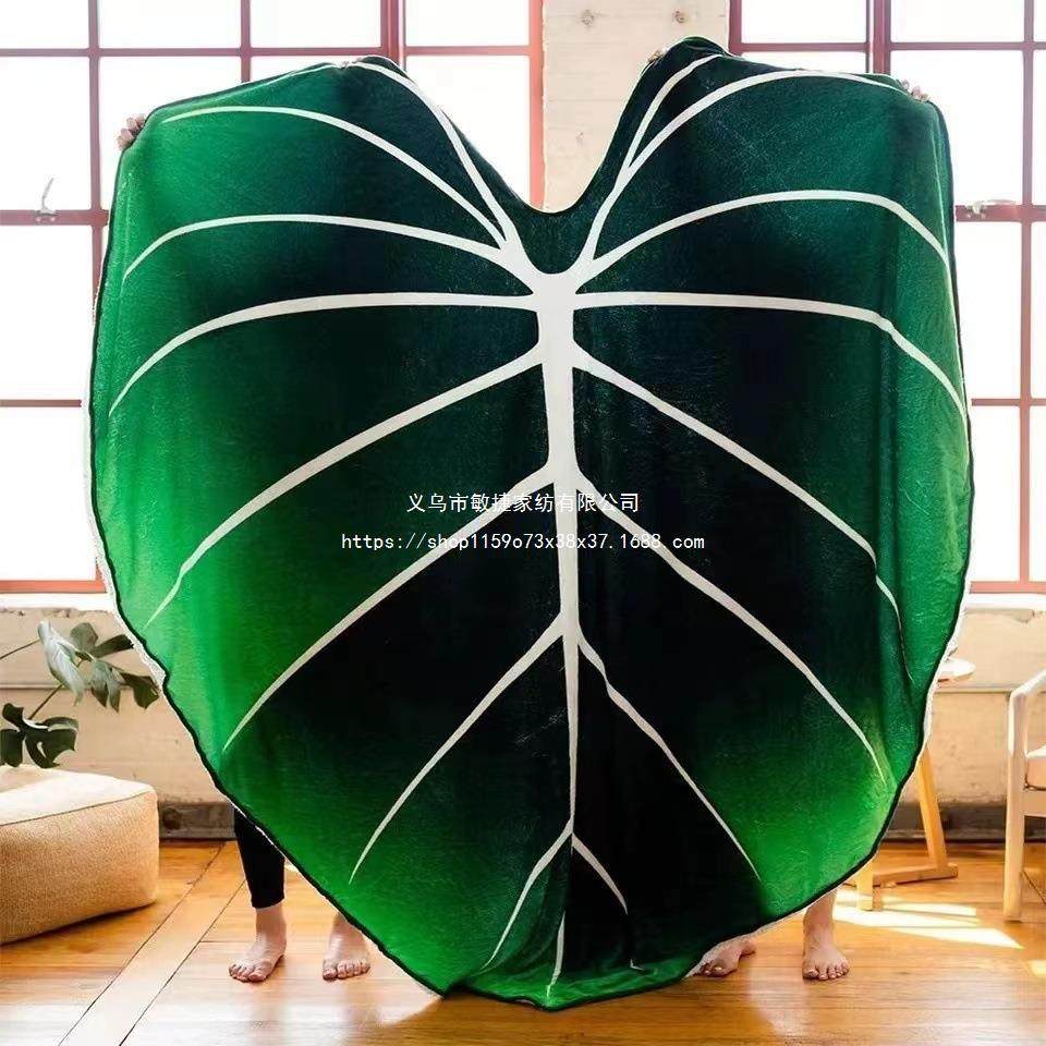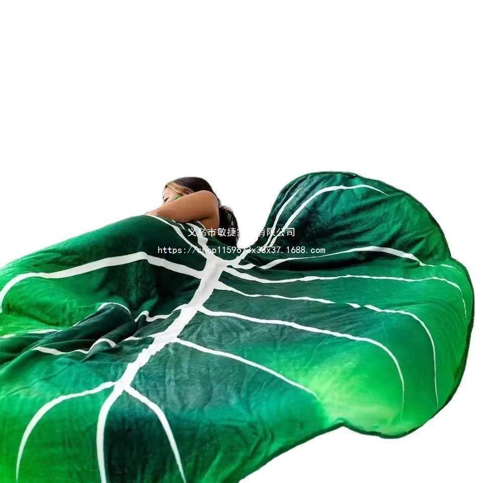 Green Large Leaf Flannel Printed Blanket Air Conditioning Cover Blanket Sofa Blanket Suitable for Bed Blanket Office Nap Blanket
