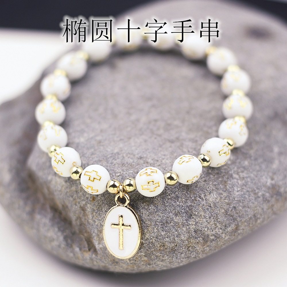 Cross-border AliExpress hot sale original oval cross pendant bracelet women's baptism bracelet prayer bracelet gift