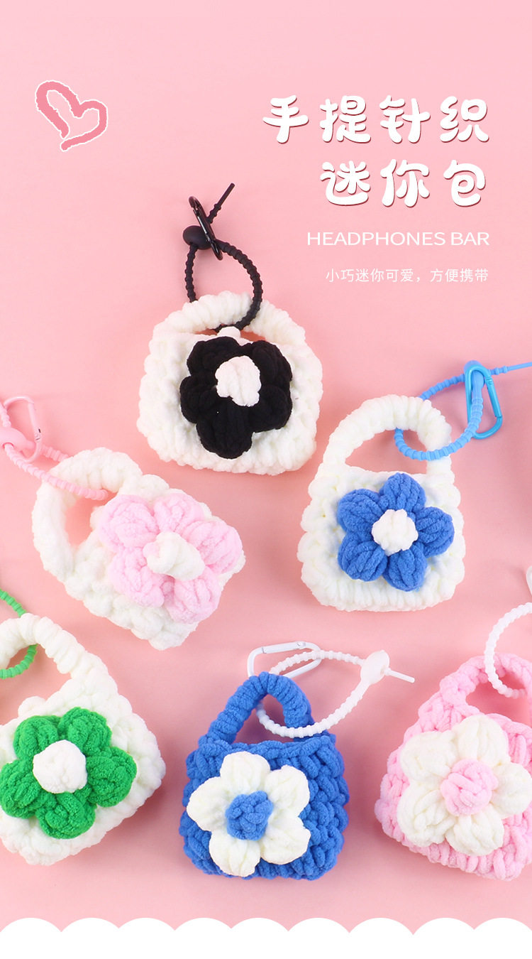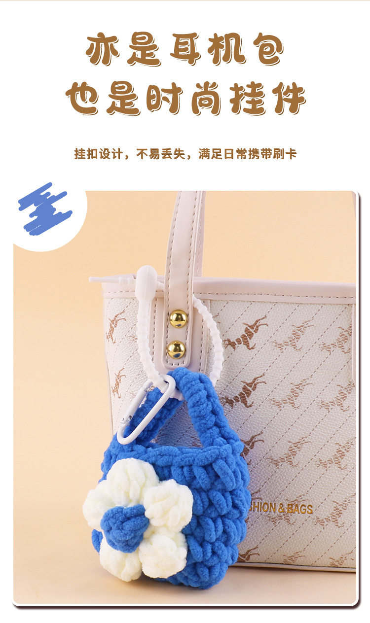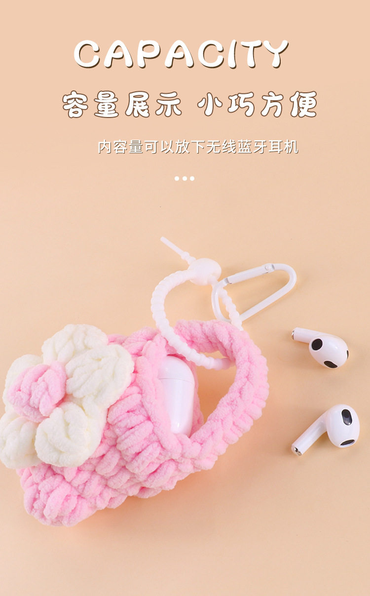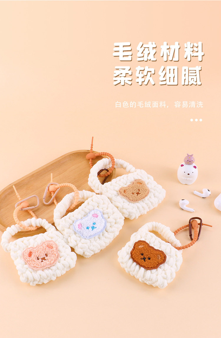 Handmade Knitted Plush Coin Purse Cute Children's Mini Bluetooth airpods2 Headset Protective Case Key Pendant