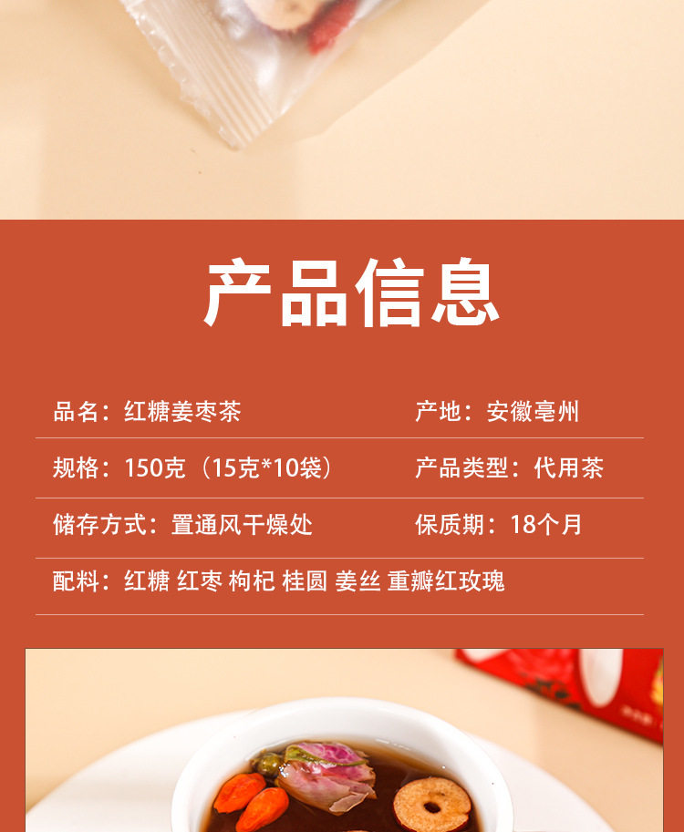 | Packaging specifications | Yutang brown sugar ginger jujube tea box 150g |