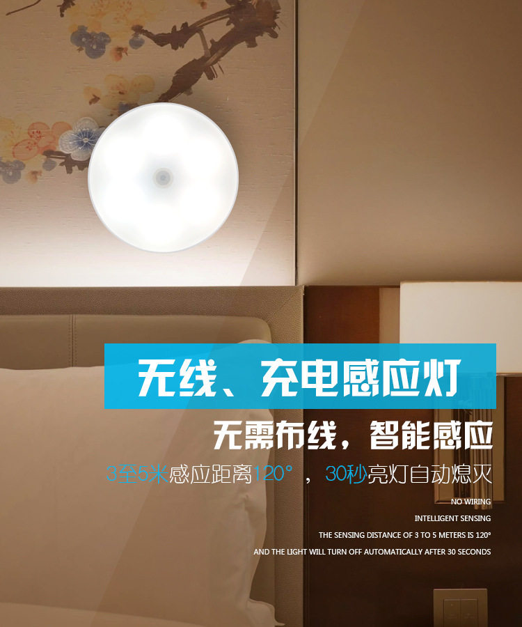 Cross-Border Led Human Body Sensor USB Charging Light Magnetic Night Light Wardrobe Cabinet Dormitory Sensor Light That Lights up When People Come