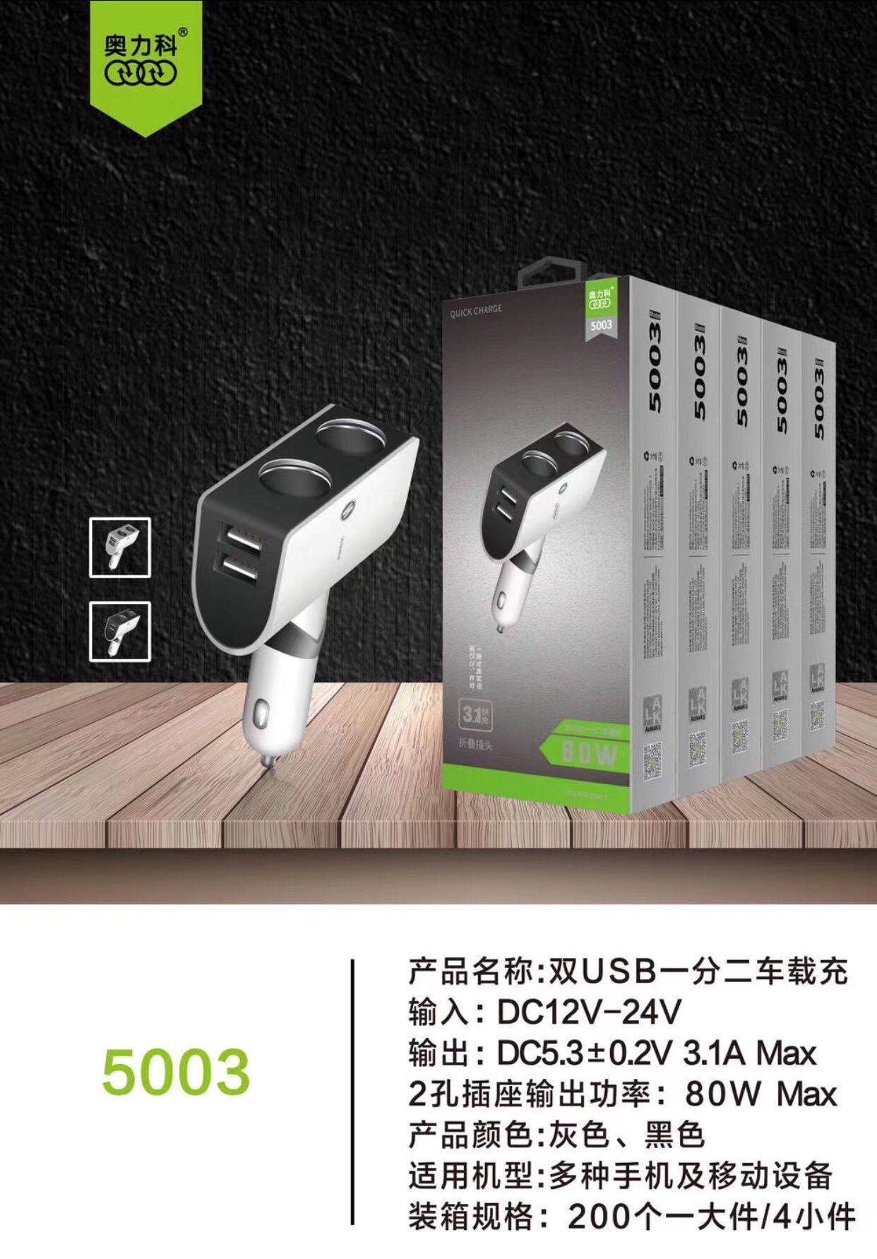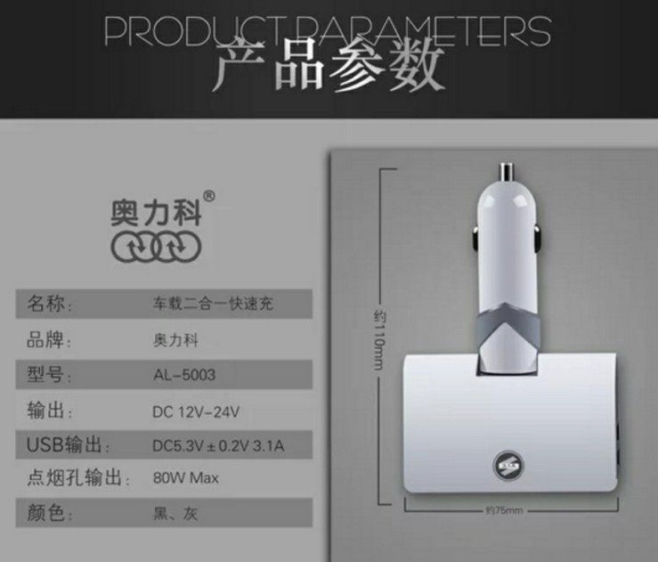 Oulco AL5003 80W car car smoke hole 1 2 3A car charger fast car recorder dual-use car charger