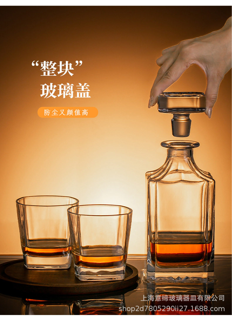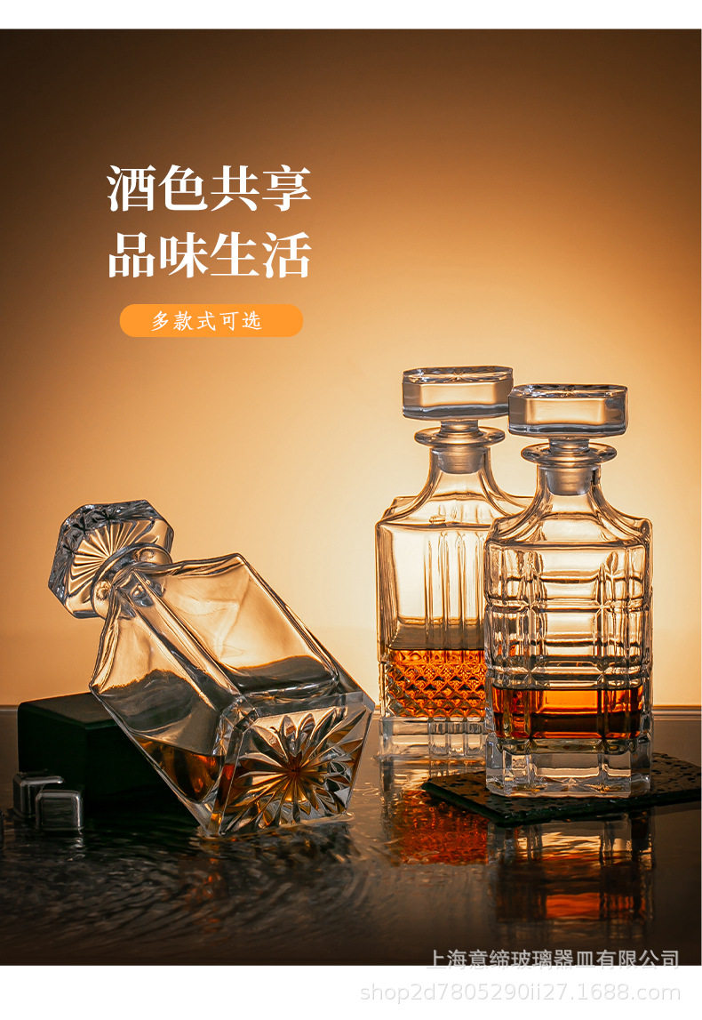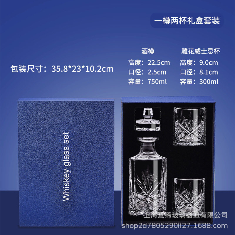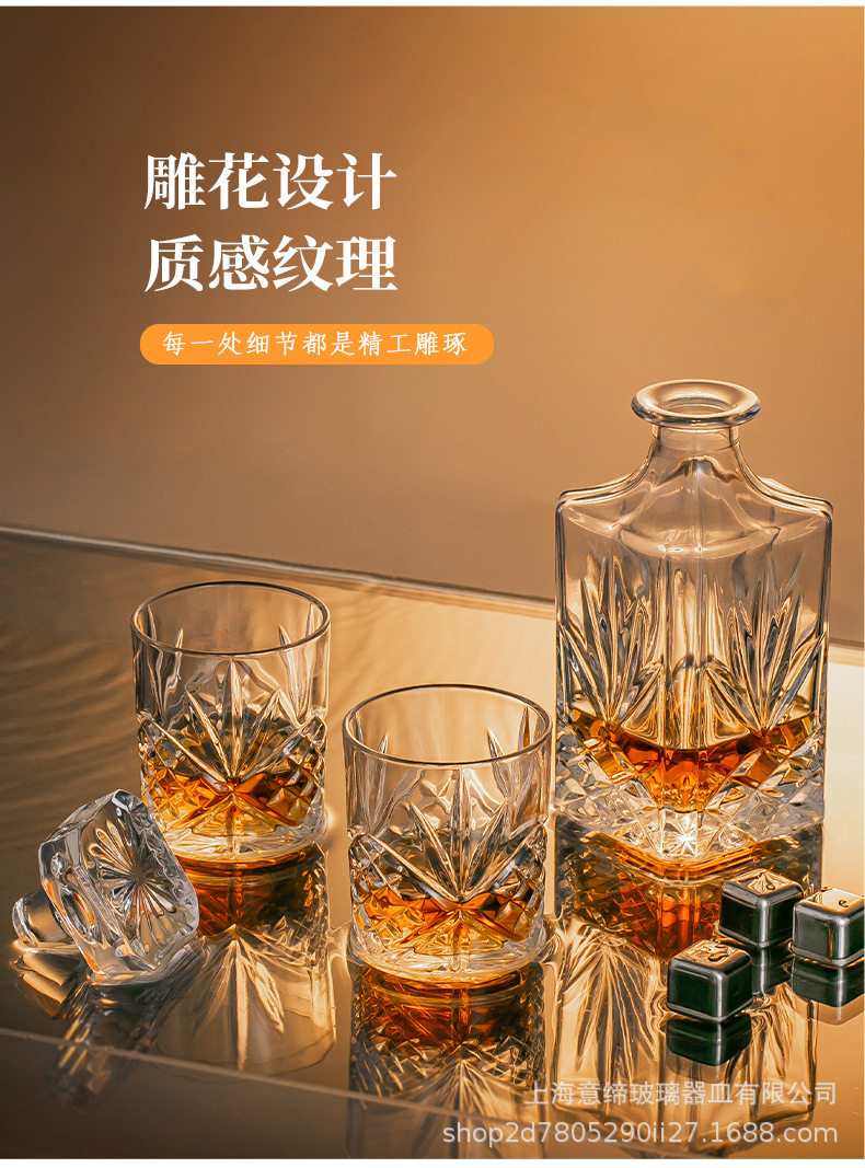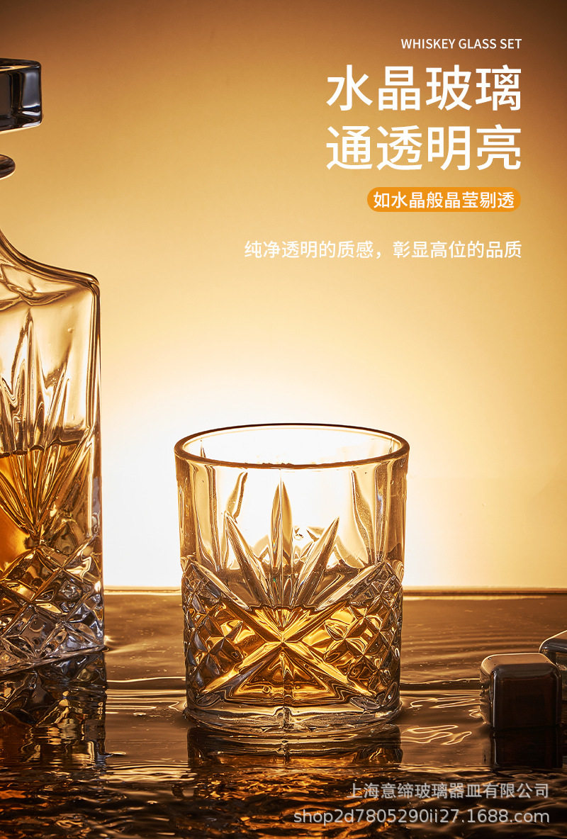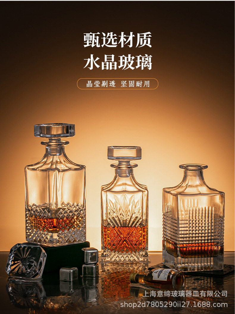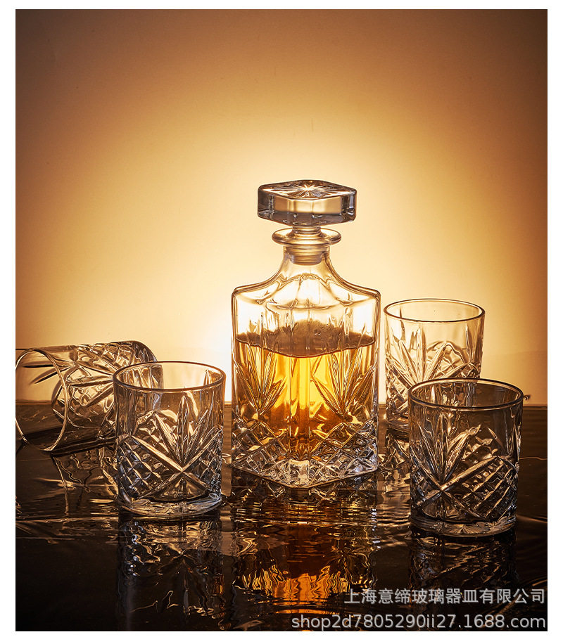 European-style Crystal Whiskey Wine Bottle Household Quartet Wine Bottle with Lid suit Glass Carved Spirits Wine Glass