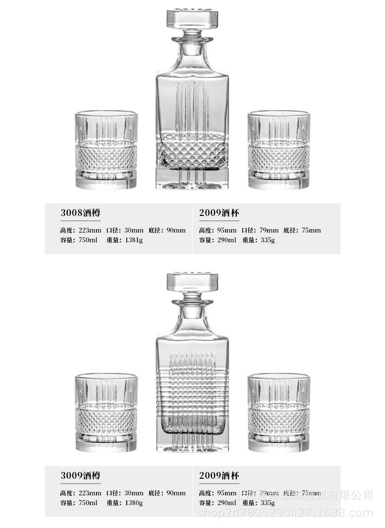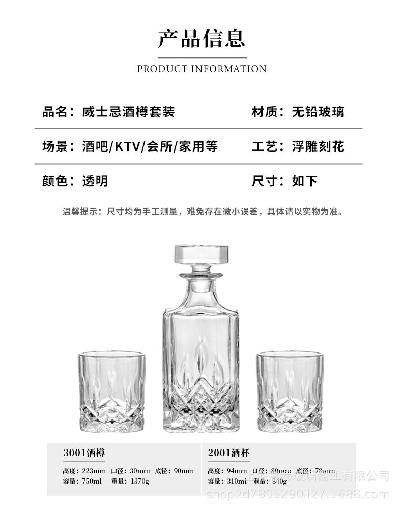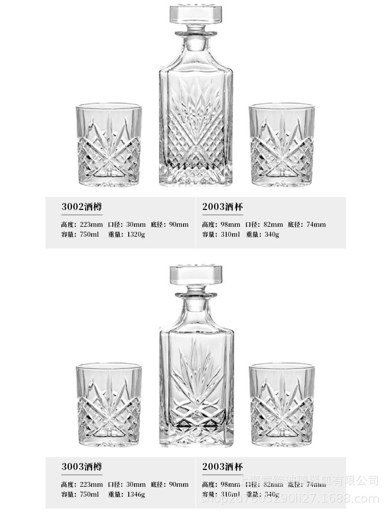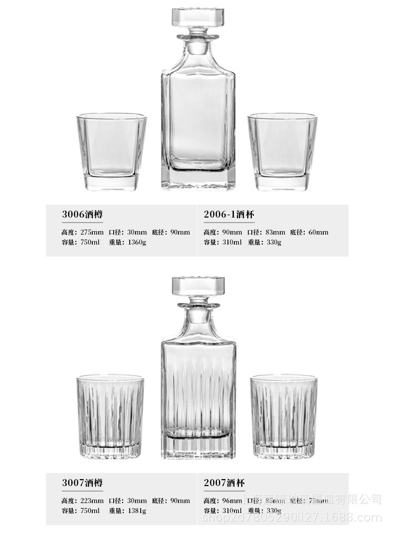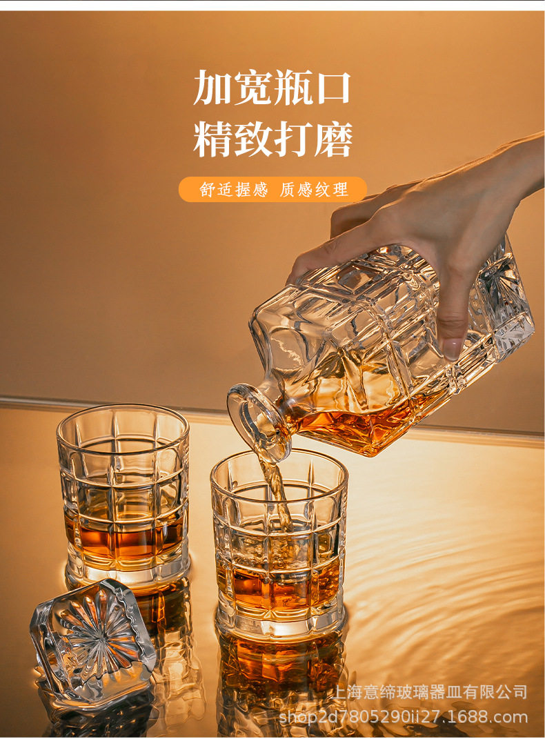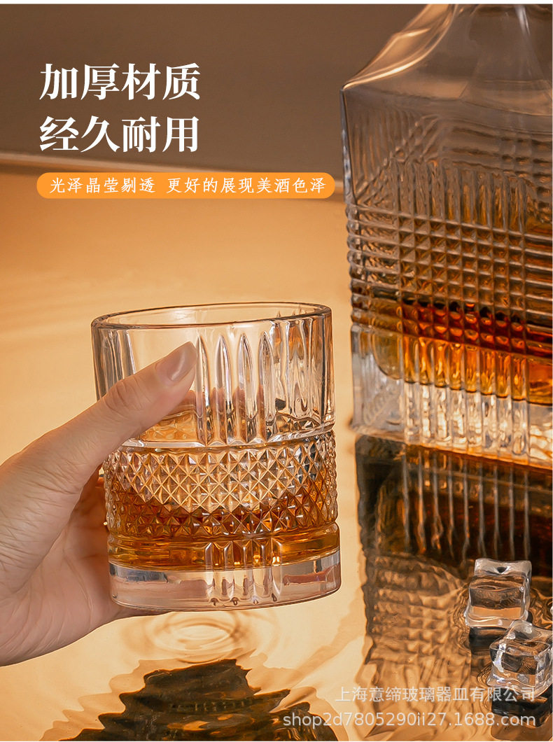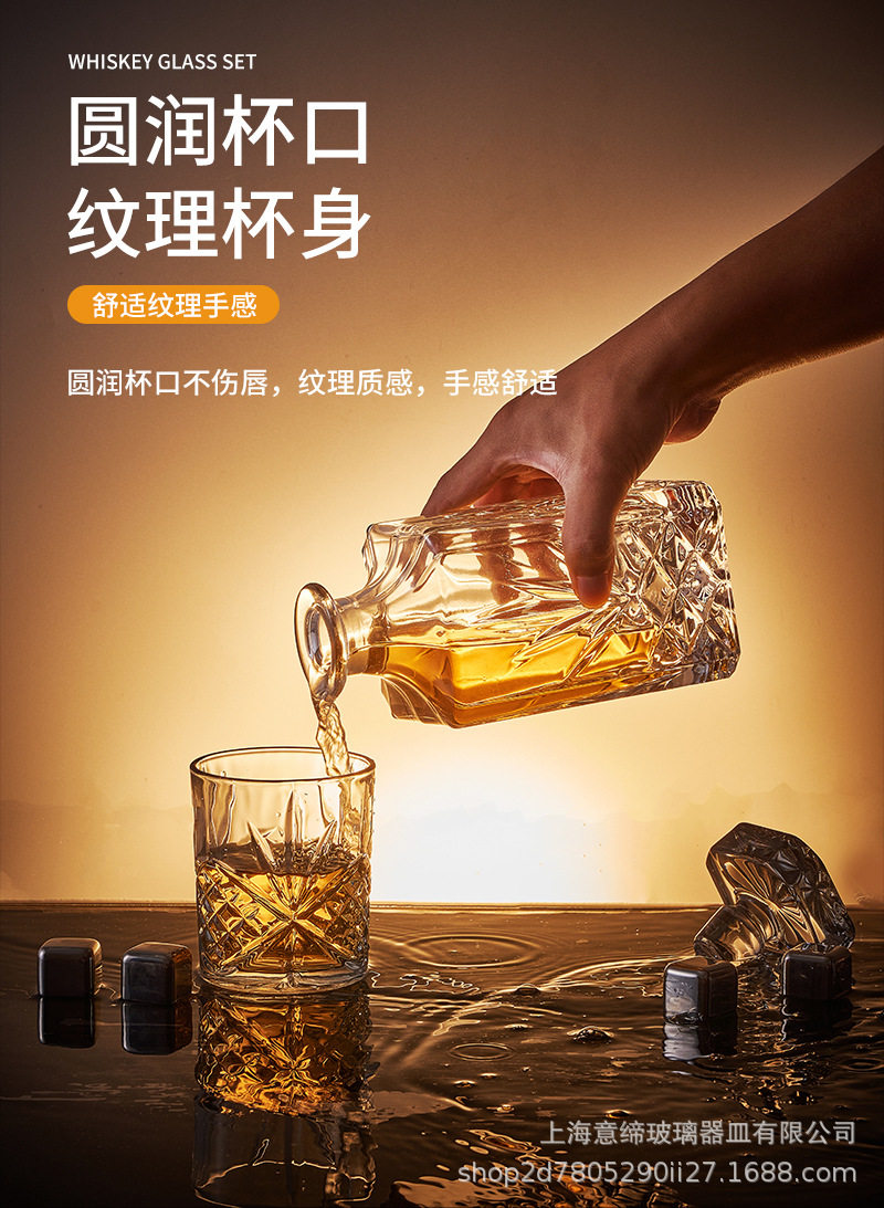 European-style Crystal Whiskey Wine Bottle Household Quartet Wine Bottle with Lid suit Glass Carved Spirits Wine Glass