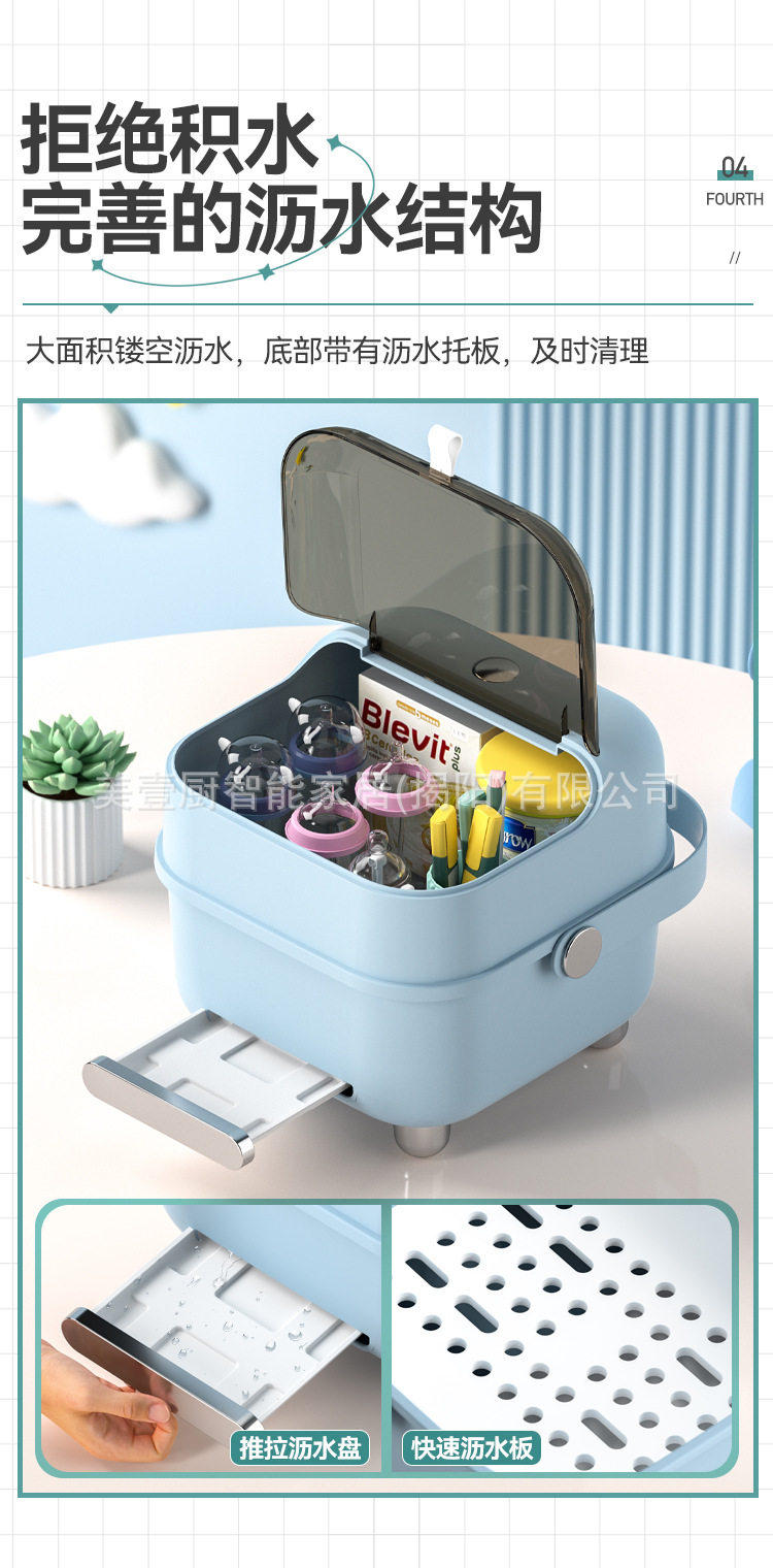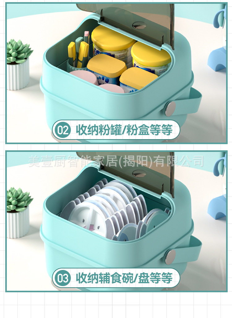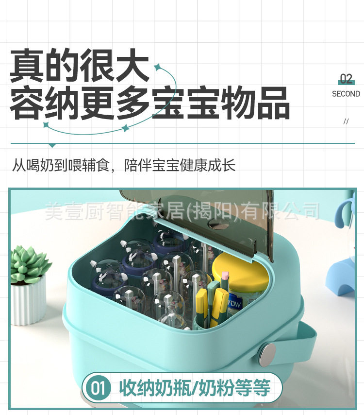 Baby tableware storage box tableware bottle storage box dustproof draining baby large capacity food supplement tool storage box