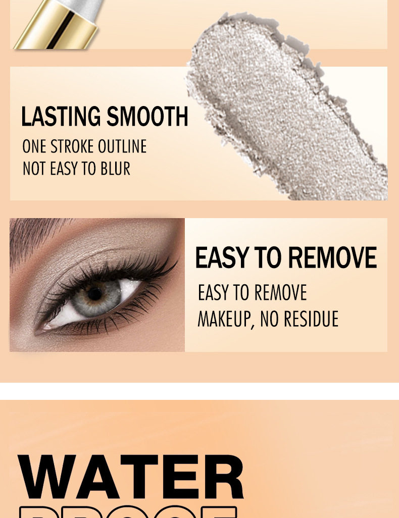 | Efficacy | Waterproof,Does not smudge,Easy to color |