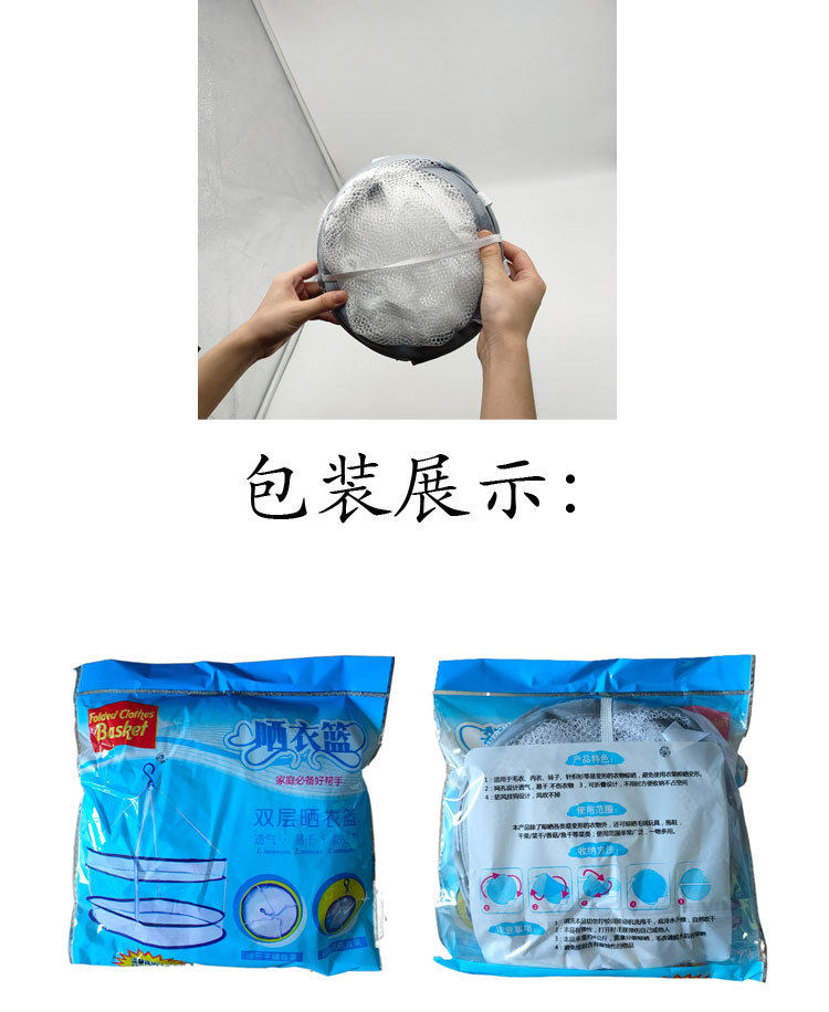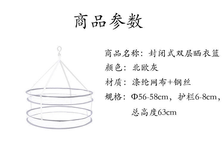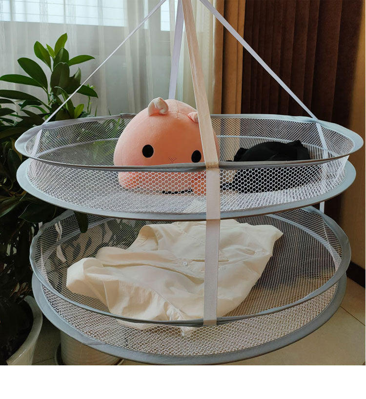 Factory wholesale double drying basket drying net Nordic gray anti-deformation windproof drying net home foldable
