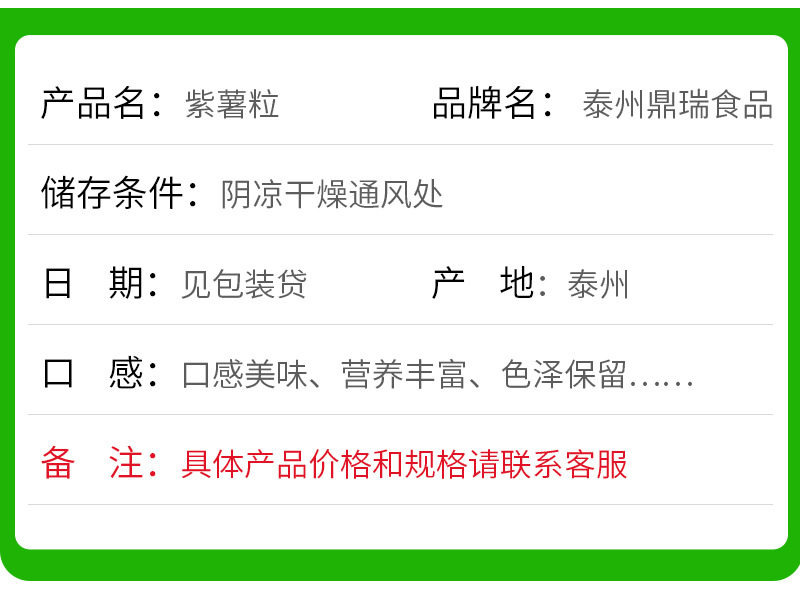 | Raw materials and ingredients | Purple sweet potato |