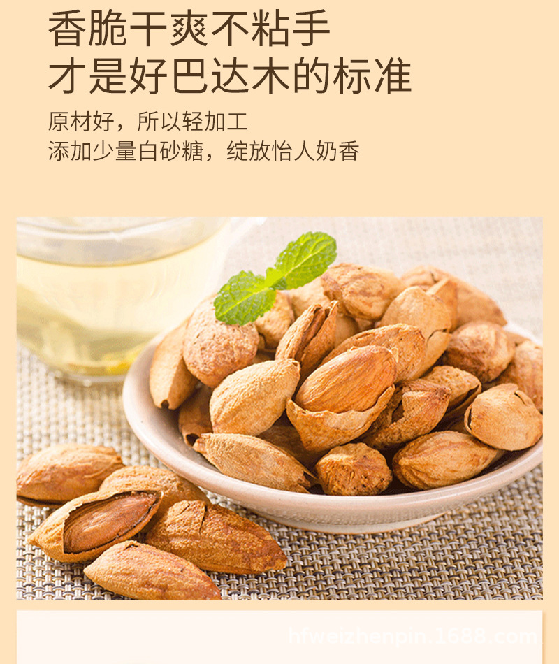 | Packaging specifications | Almond 500g (net weight 0.5kg ),Hawaiian fruit 500g (net weight 0.5kg ),Pecan 500g (net weight 0.5kg ),Pistachio 500g (net weight 0.5kg ),Caramel melon seeds 500g (net weight 0.5kg ),Orchid beans 500g,Multi-flavored peanuts 500g,Macadamia nuts 100g,200g paper-skinned walnuts,Purple sweet potato peanuts 138g,Half dried plums 138g,Multi-flavor peanuts 138g,Raisins 138g,Hawthorn strips 138g,138g fried rice,Garlic green beans 138g,Crab melon seeds 138g,120g dried mango,108g almonds |