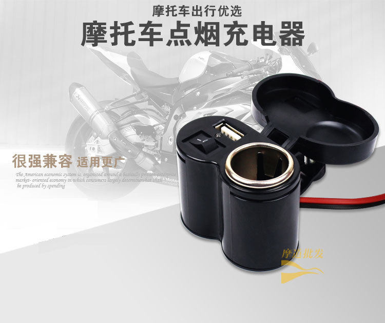 Cross-border wholesale motorcycle cigarette lighter mobile phone charger 12V car USB charger waterproof universal two-in-one