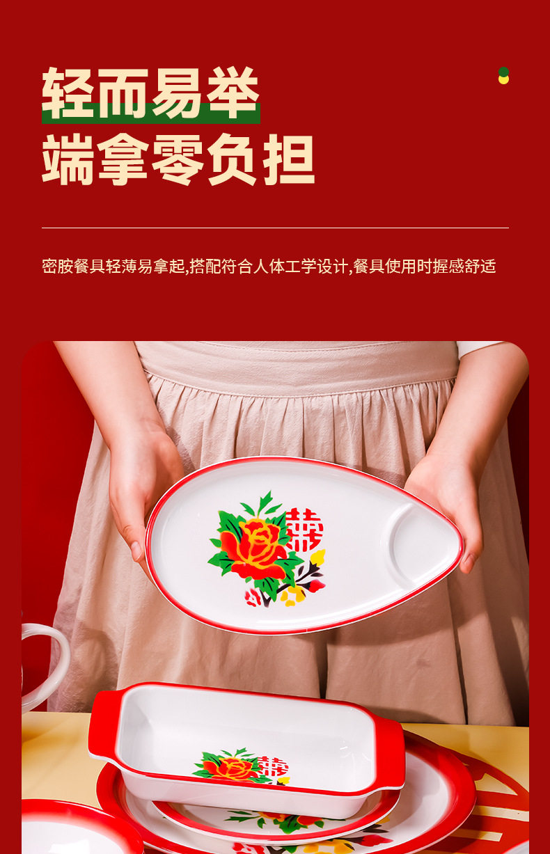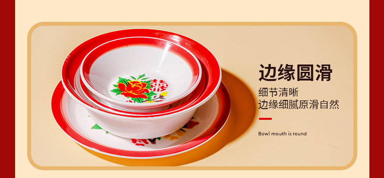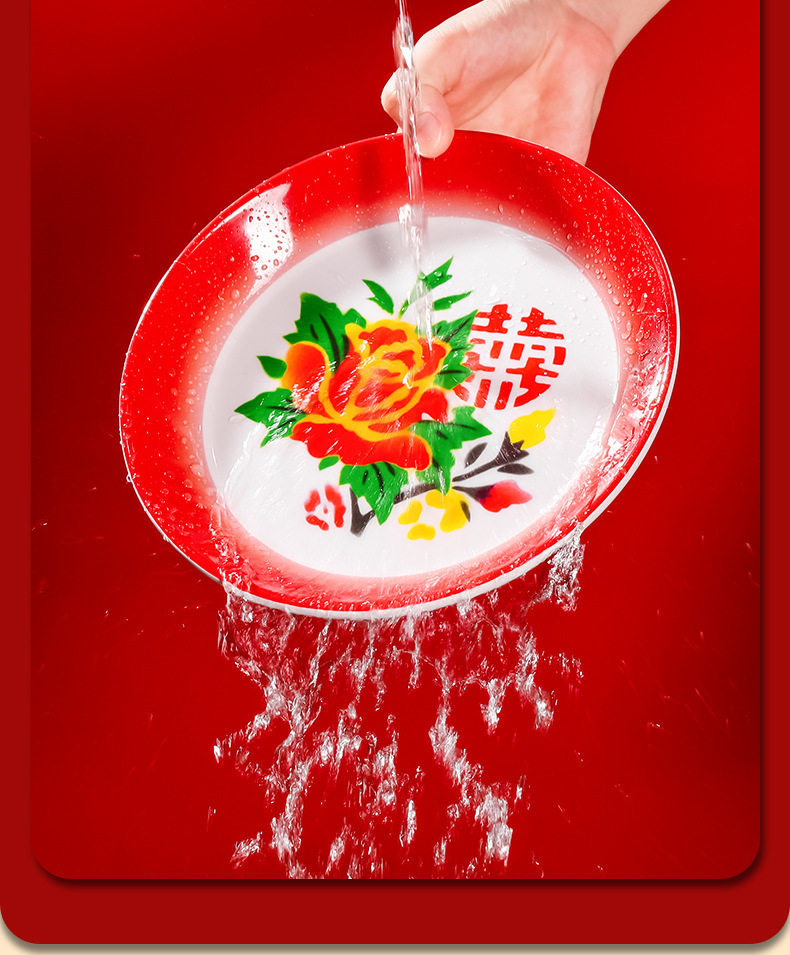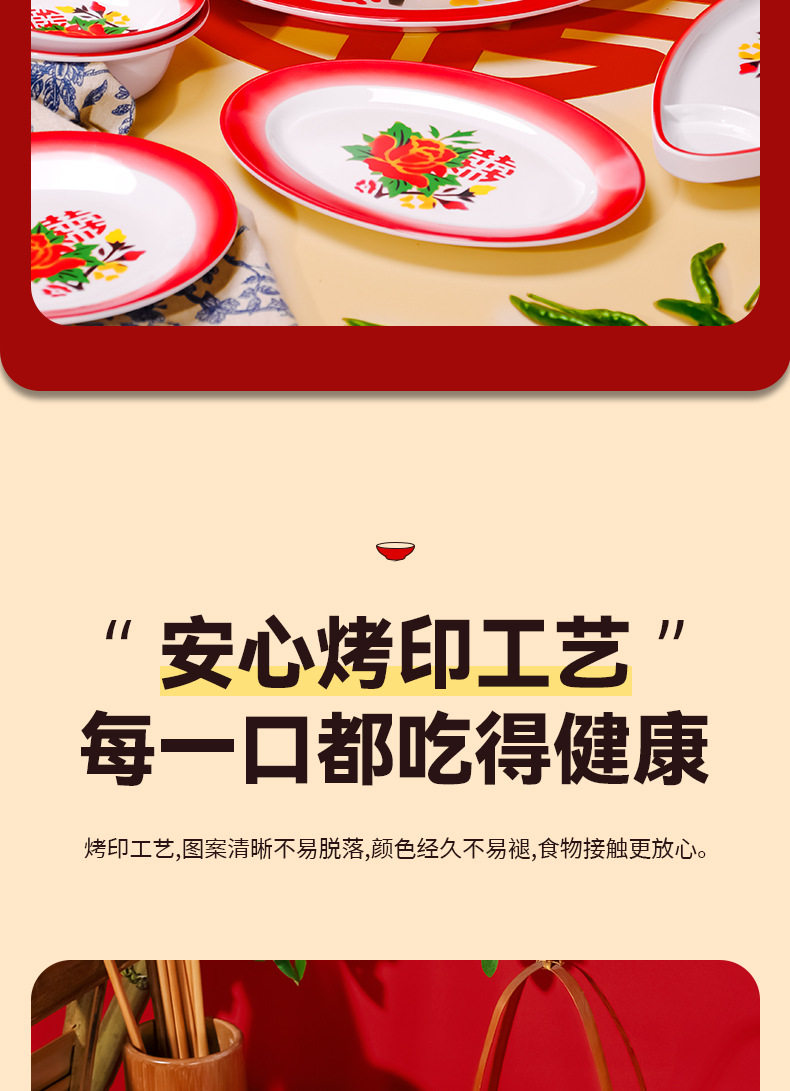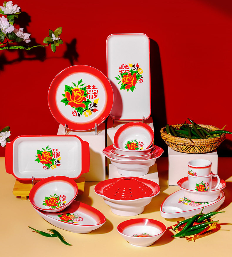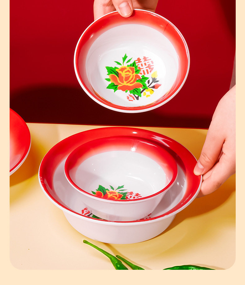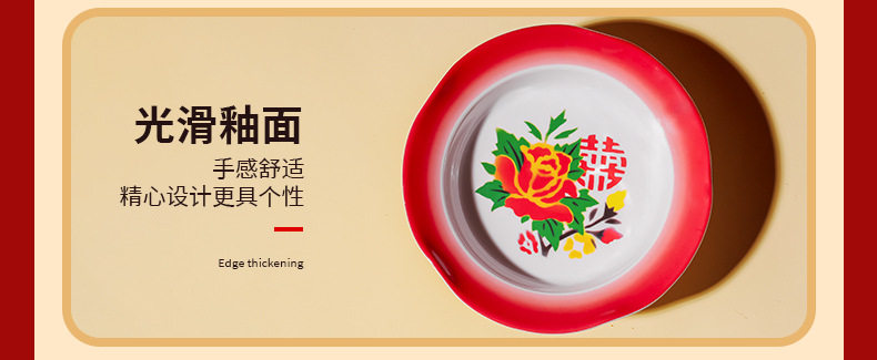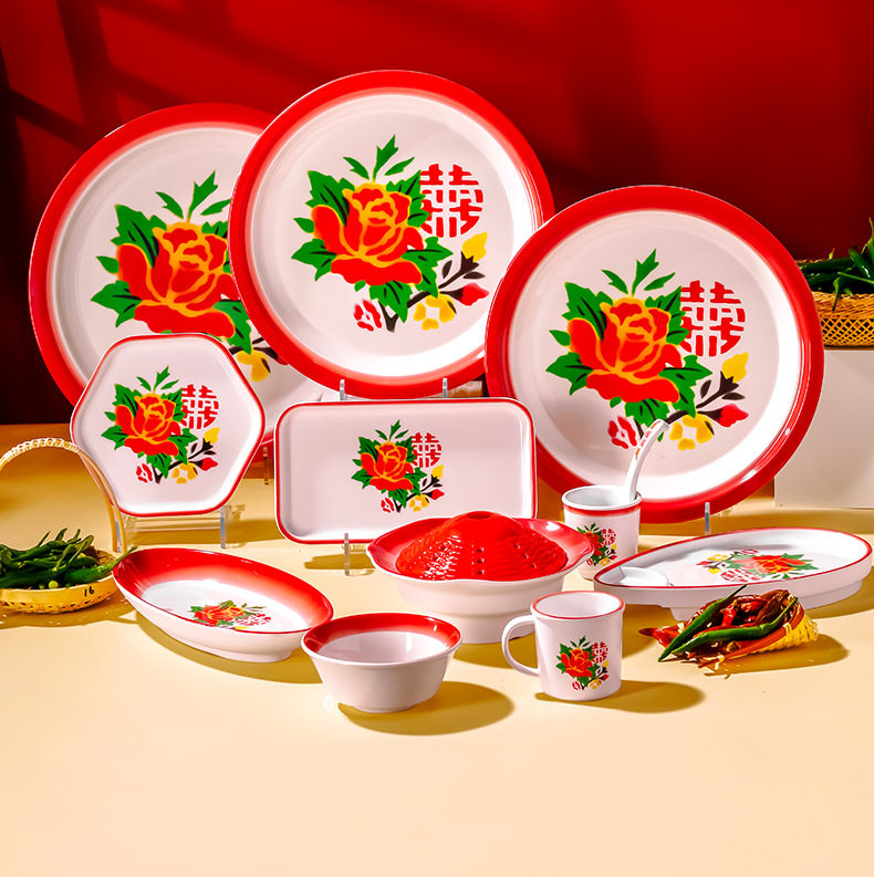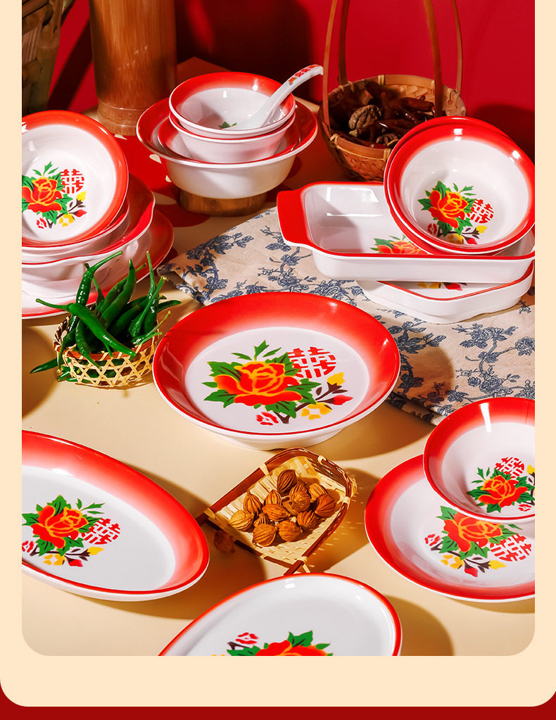 Net Celebrous Nostalgic Hot Pot Restaurant Happy Word Dish Plate Stall Snacks Barbecue Plate Commercial Spicy Mix Porcelain-like Milamine Tableware