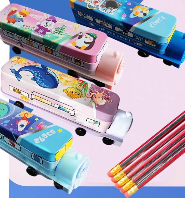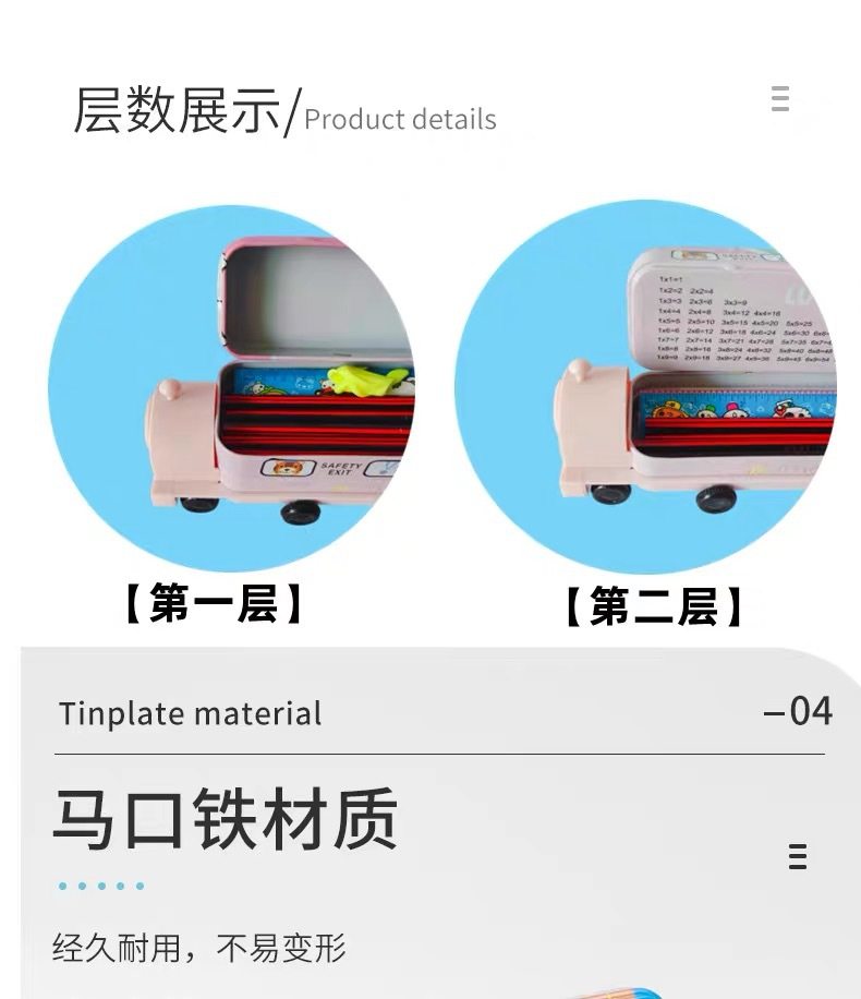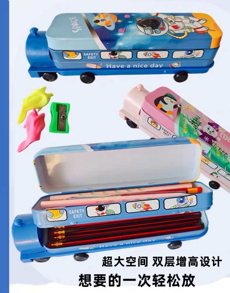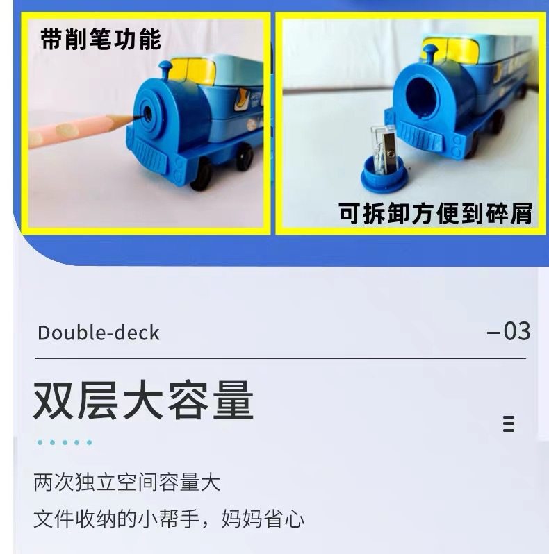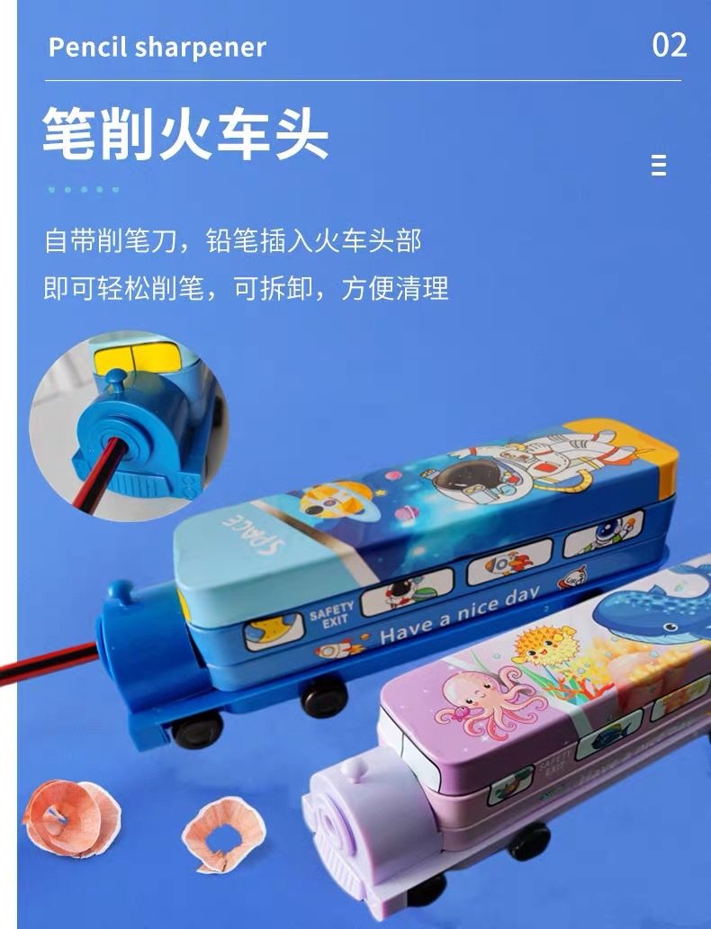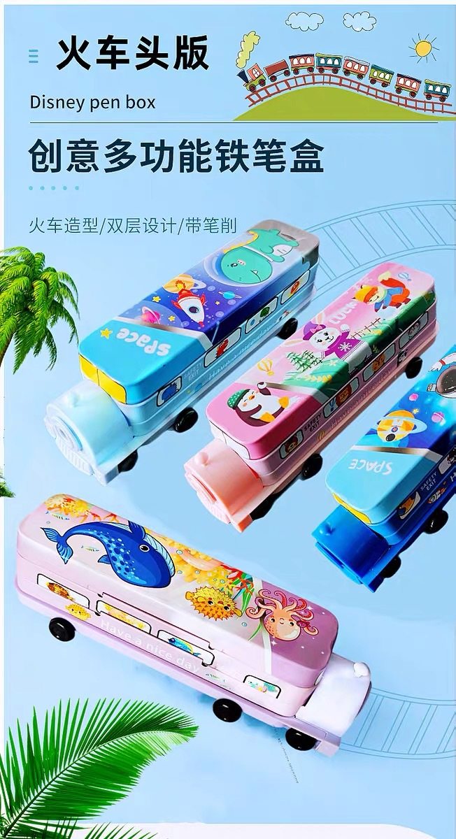 Cross-Border Fun Cartoon Double-Layer Tinplate Locomotive Multifunctional Pencil Case for Primary School Students, Ready for Wholesale and Customization