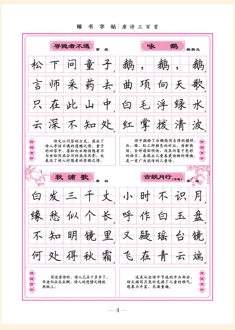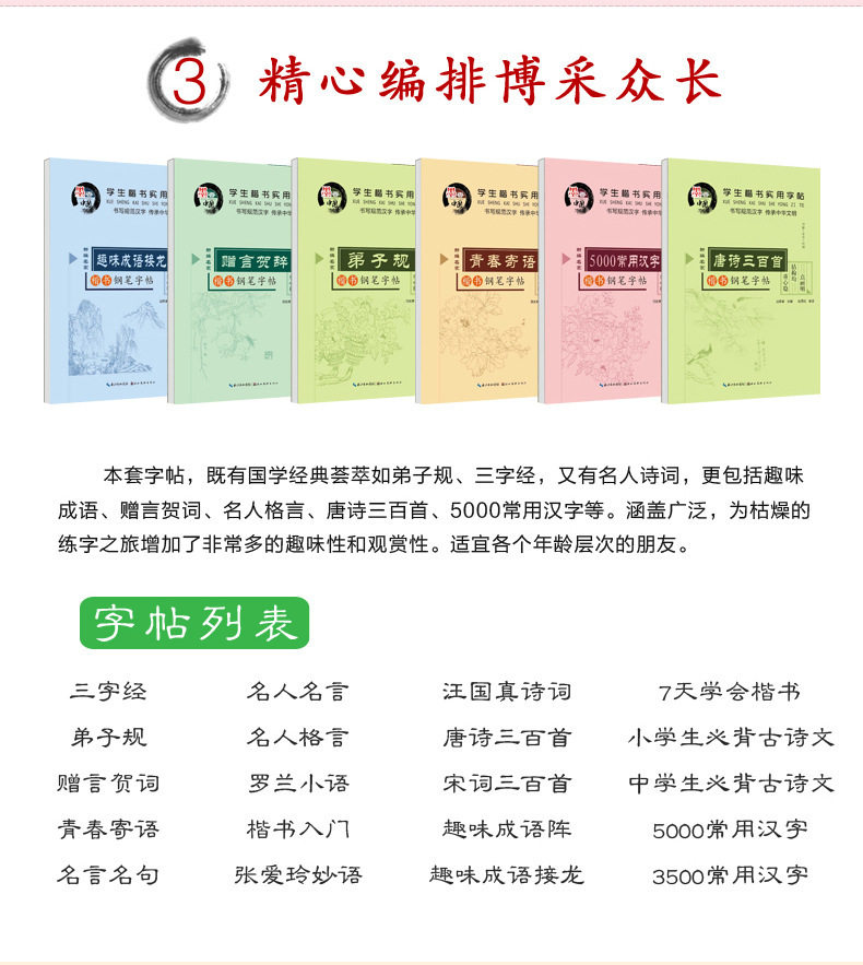 | Color | Regular script-Introduction to regular script,Regular script-7 days to learn regular script,Regular script-fun idiom,Regular script-300 Tang Poems,Regular script-three-character Sutra,Regular script-disciple rule,Regular script-3500 common characters,Regular script-5000 common characters,Regular script-interesting idiom array,Regular script-Wang Guozhen's poems,Regular script-Roland Xiaoyu,Regular script-Zhang Ailing's witticism,Regular script-message of youth,Regular script-Greetings,Regular script-Chinese must recite ancient poetry,Regular script-Xiao Bi recited ancient poetry,Regular script-celebrity motto,Regular script-famous words,Regular script-famous words,Regular script-300 Song Poems |