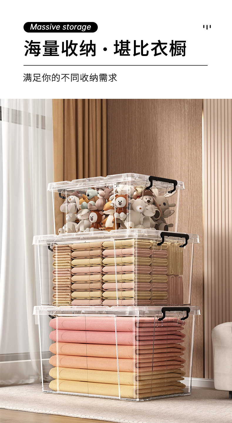 Transparent Storage Box Large Capacity Super Large Household Wardrobe Clothes Plastic Organiser Toy Trunk Storage Box