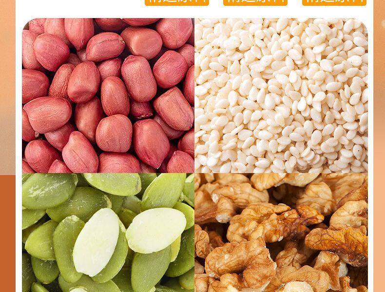 | Raw materials and ingredients | Almond, peanut kernel, walnut, pumpkin seeds, sesame seeds |