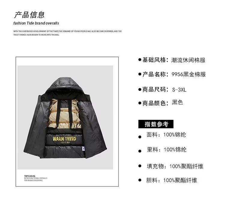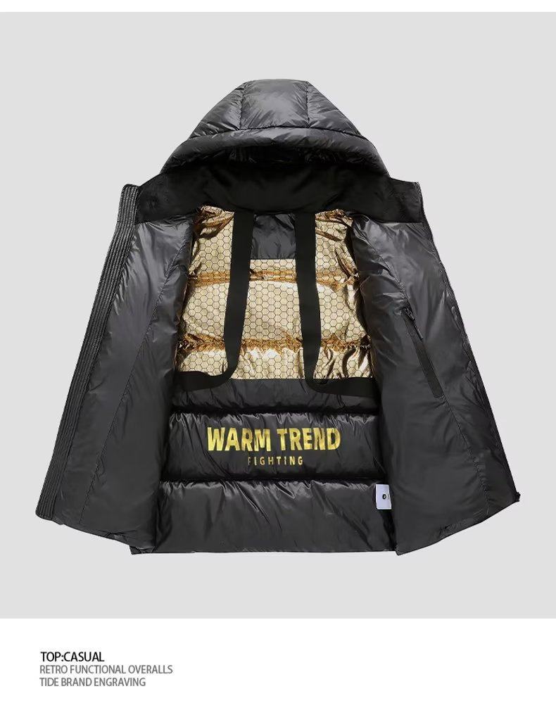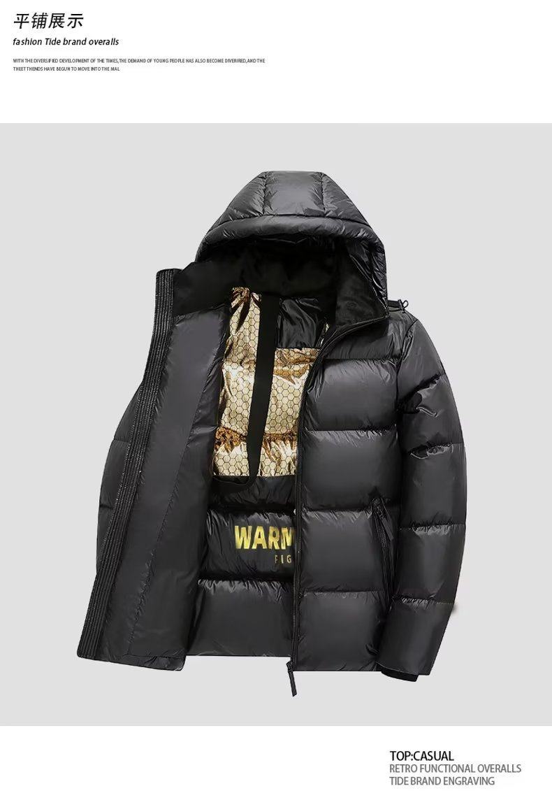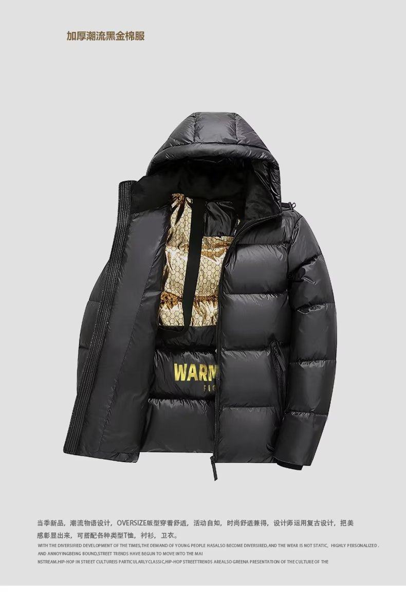New national standard 90 white duck down black gold high-end down jacket thickened warm hooded cotton-padded jacket for men