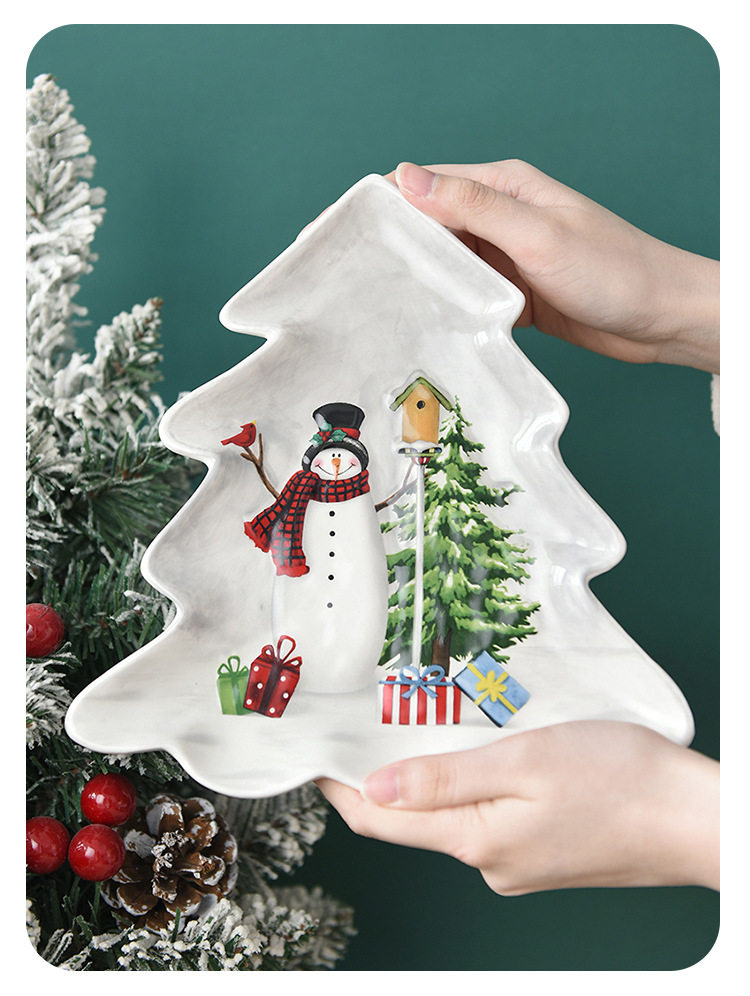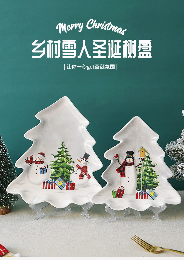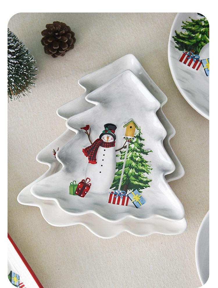 Nordic country Christmas snowman Christmas tree plate creative tree plate dinner plate dessert dessert plate tray tableware