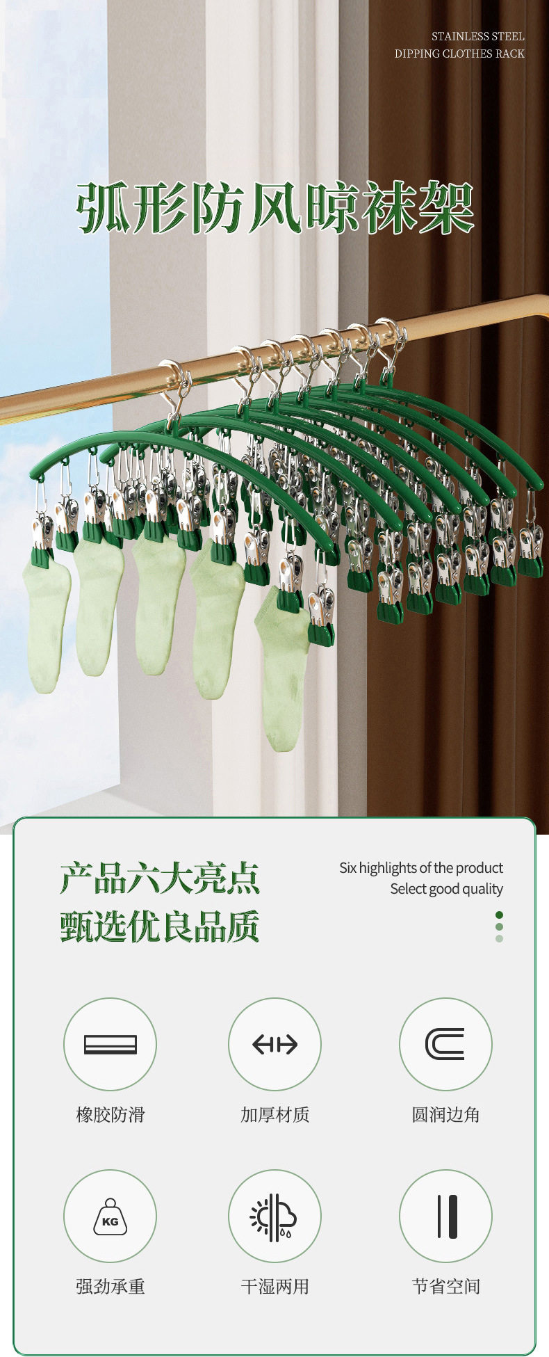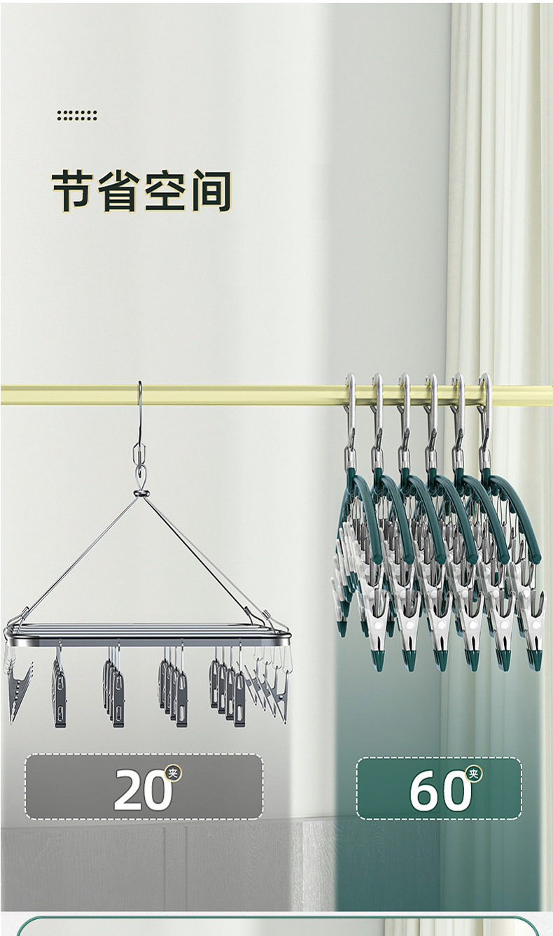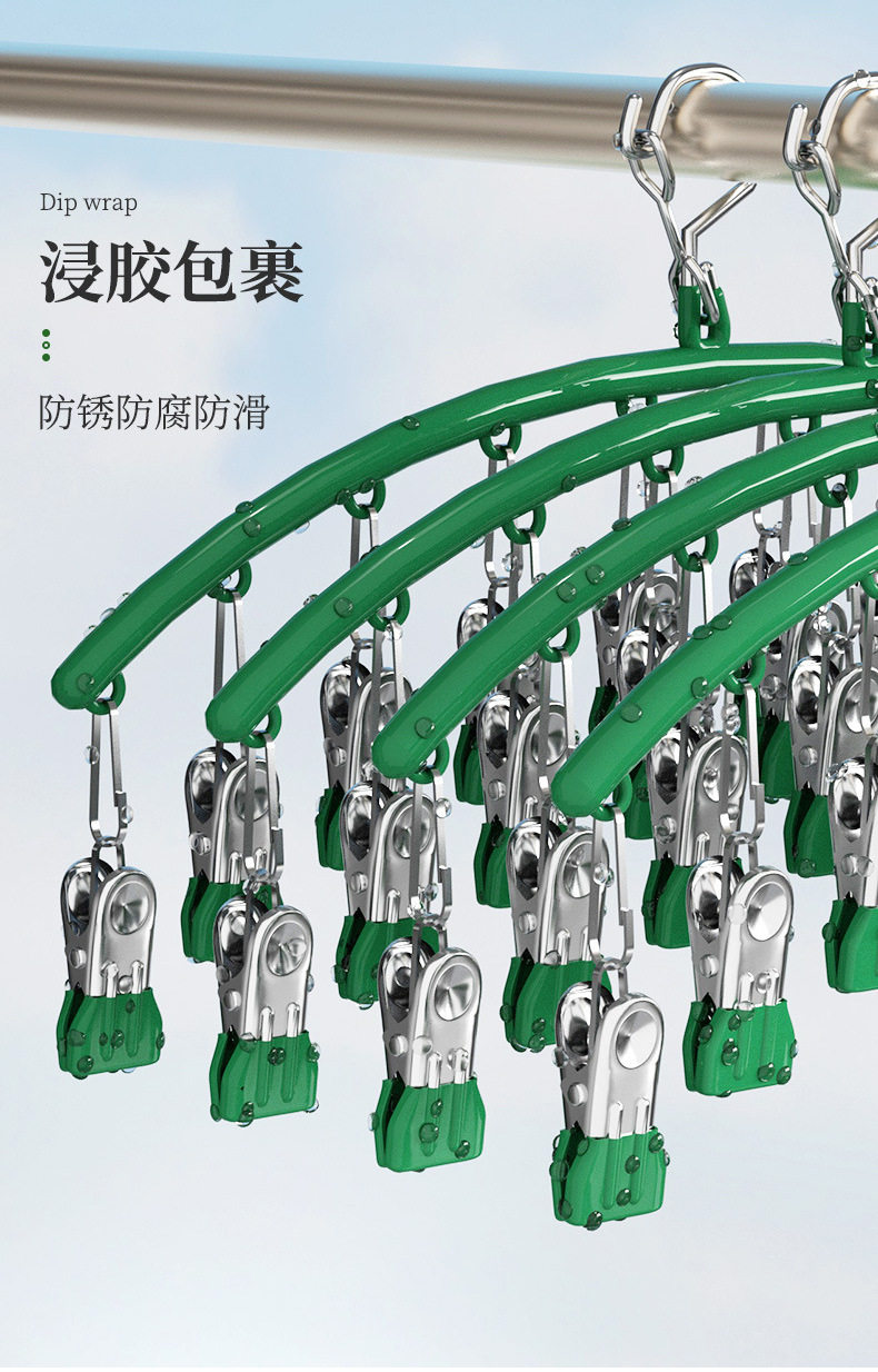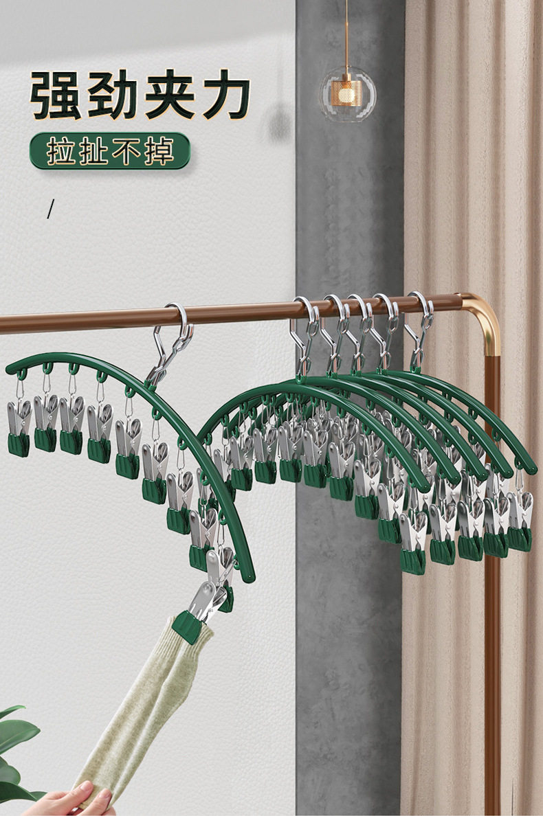 Chuangliangda stainless steel color plastic dipping arc 10 clip socks drying rack socks rack student household Golden drying rack