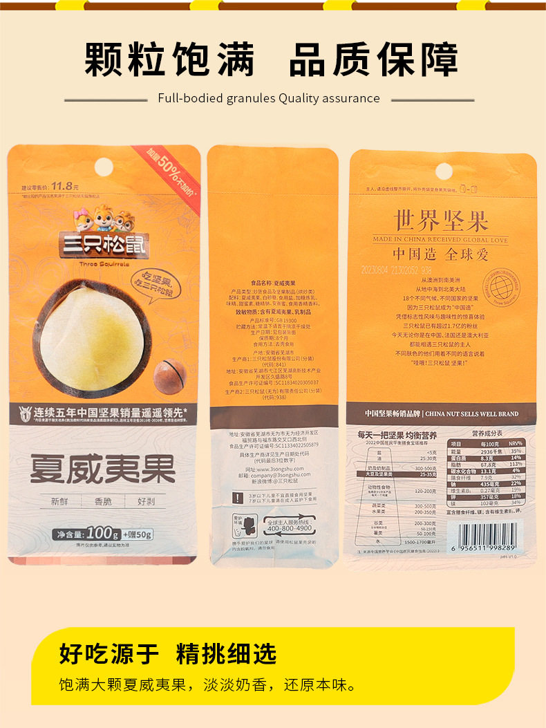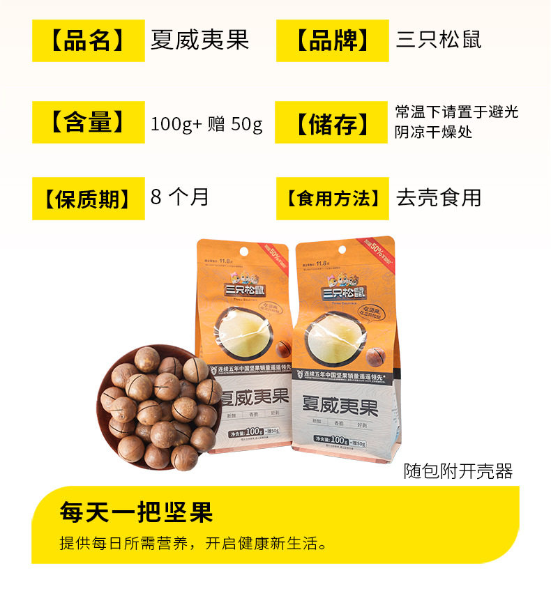 Dropshipping Three Squirrels Macadamia Nuts 150g Creamy Daily Nuts and Dried Fruits Casual Free Opener