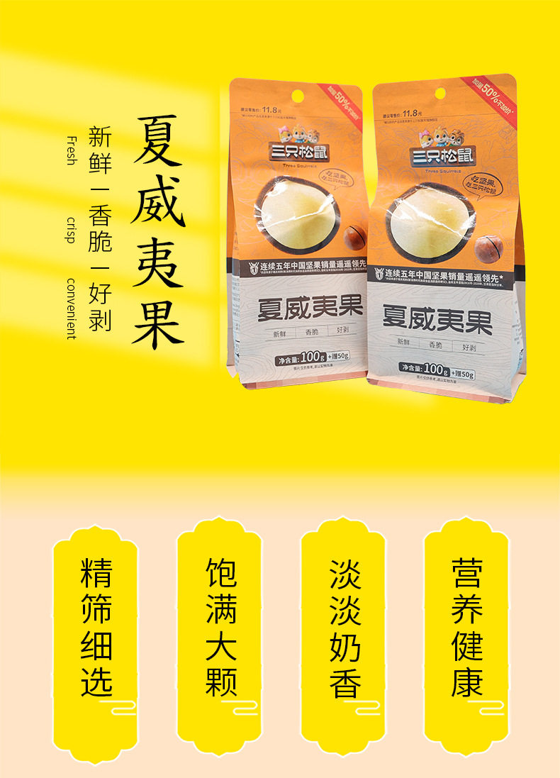 | Packaging specifications | Three Squirrels Hawaii fruit 150gX1 bags,Three Squirrels Hawaii fruit 150gX2 bag,Three Squirrels Hawaii fruit 150gX3 bag,Three Squirrels Hawaii fruit 150gX5 bag,Three Squirrels Hawaii fruit 150gX10 bags |