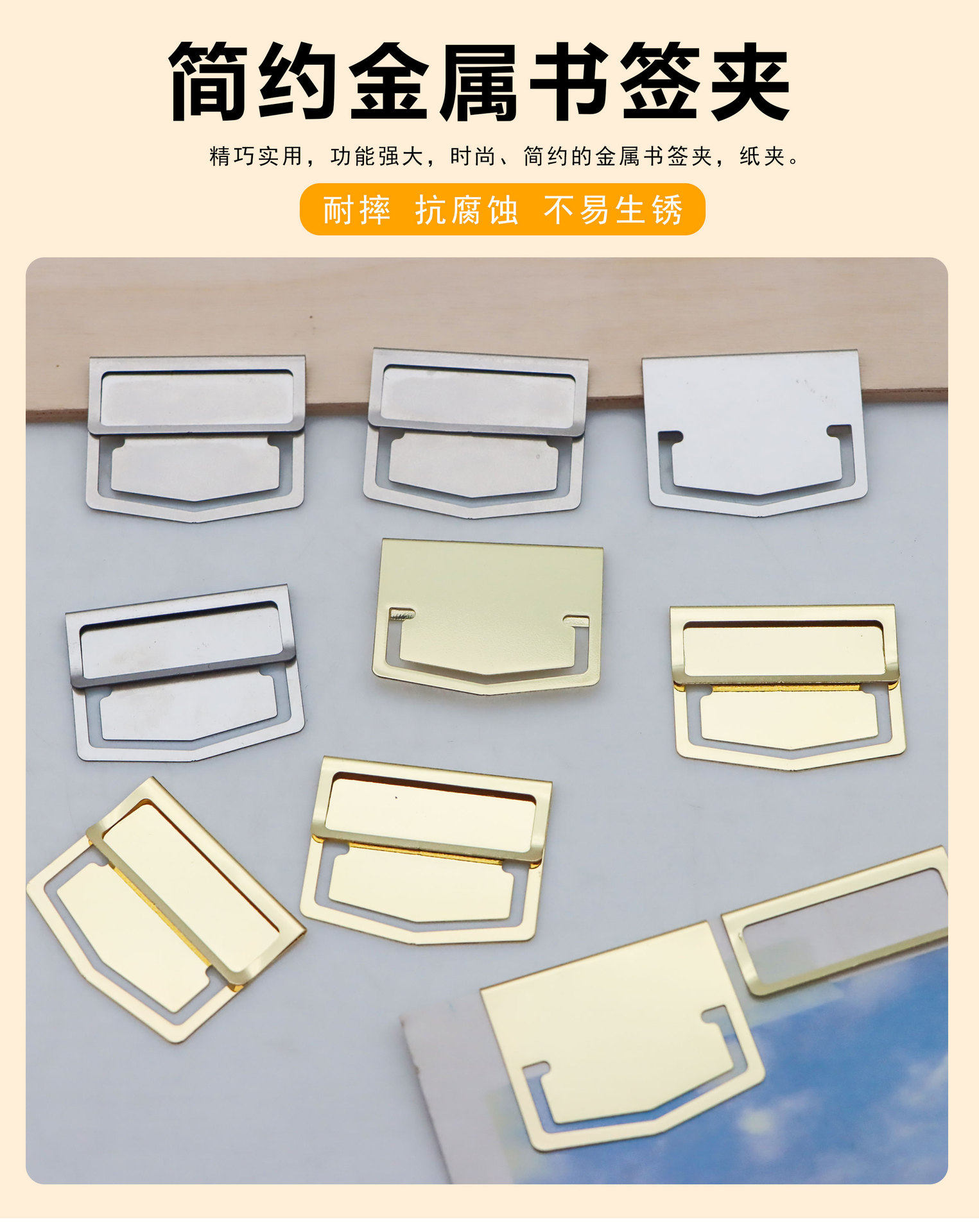 Creative Stainless Steel Bookmark Folding Index Clip Stationery Label Clip Electroplated Metal Paper Clip Hand Account Clip in stock Wholesale