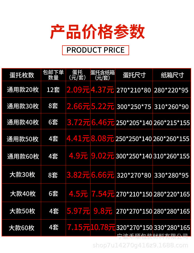| Specifications and models | White; General 10 cover plate egg tray carton [56 sets of real hair]; 30-60,White; Universal 20-piece cover plate egg tray carton [28 sets of actual hair]; 30-60,White; Universal 30-piece cover plate egg tray carton [20 sets of actual hair]; 30-60,White; Thickened large 30-piece cover plate egg tray carton [16 sets of real hair]; 30-60,White; General 40 cover plate egg tray carton [14 sets of real hair]; 30-60,White; Thickened large 40-piece cover plate egg tray carton [12 sets of real hair]; 30-60,White; General 50 cover plate egg tray carton [12 sets of real hair]; 30-60,White; Thickened large 50-piece cover plate egg tray carton [12 sets of real hair]; 30-60,White; General 60 cover plate egg tray carton [12 sets of real hair]; 30-60,White; Thickened large 60-piece cover plate egg tray carton [6 sets of real hair]; 30-60,White; General 100 cover plate egg tray carton [8 sets of actual hair]; 30-60,White; Thickened large 100 cover plate egg tray carton [4 sets of real hair]; 30-60,White; General 120 cover plate egg tray carton [8 sets of actual hair]; 30-60,White; Universal 10 cover plate egg holder [56 actual hair]; 30-60,White; Universal 20 cover plate egg holder [28 actual hair]; 30-60,White; Universal 30 cover plate egg holder [20 actual hair]; 30-60,White; Thickened large 30-piece cover plate egg holder [16 actual hair]; 30-60,White; Universal 40 cover plate egg holder [24 actual hair]; 30-60,White; Thickened large 40 cover plate egg holder [12 actual hair]; 30-60,White; Universal 50 cover plate egg holder [12 actual hair]; 30-60,White; Thickened 50 large cover plate egg holder [12 actual hair]; 30-60 |