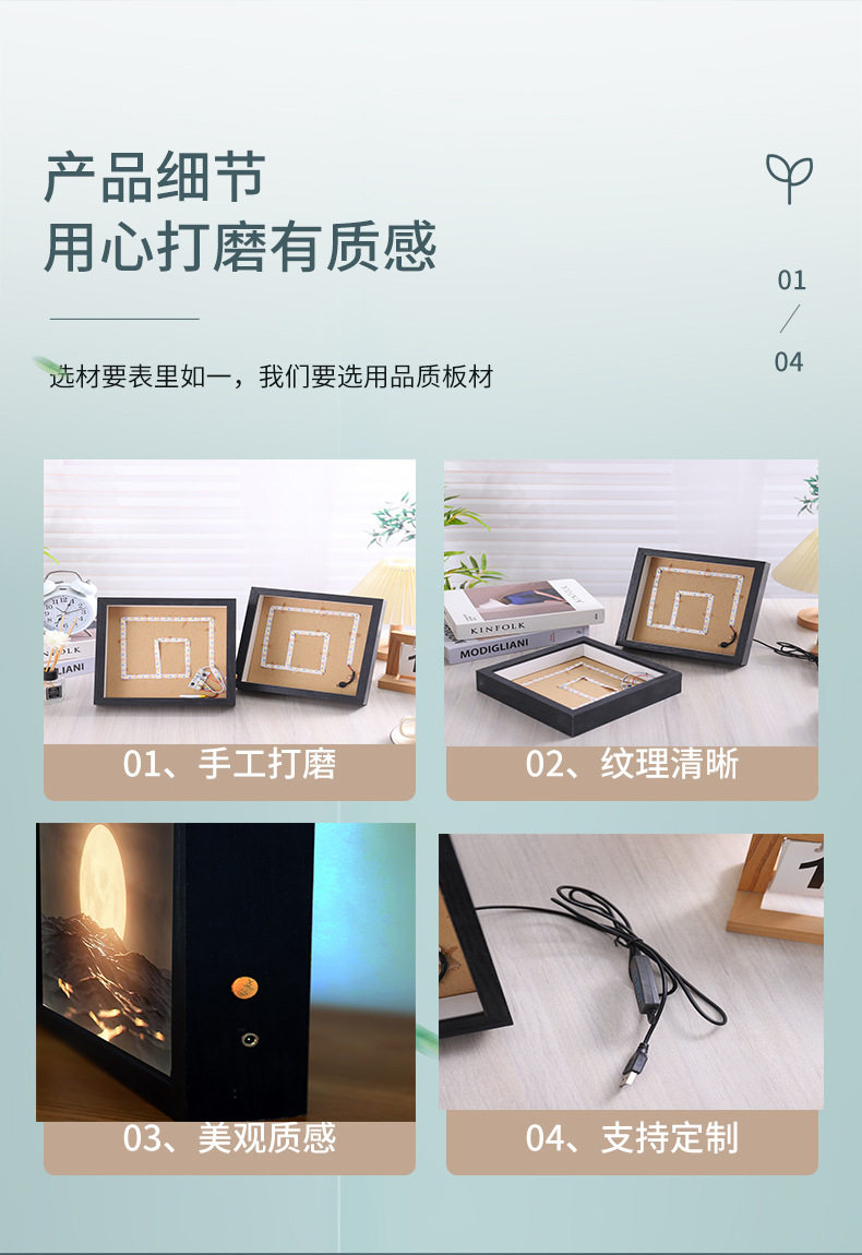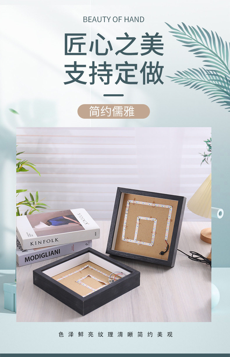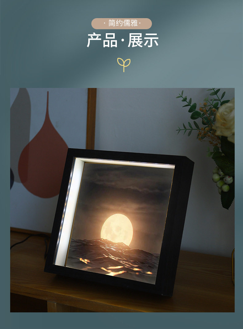 Spot Light Painting Photo Frame with Light Home Gift Valentine's Day Moonlight Painting Night Light Decoration Wooden Table Photo Album