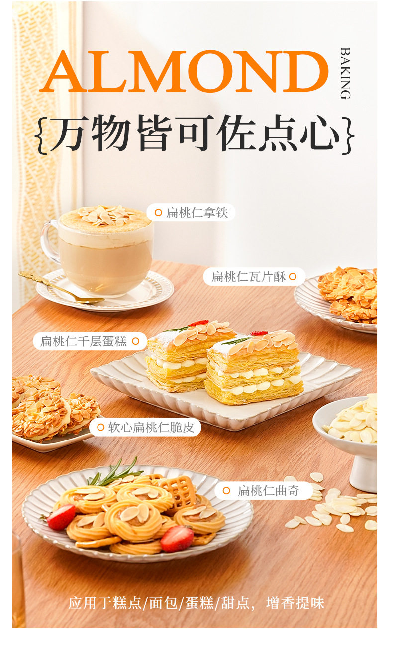 Exhibition art peeling almond slices 100g nougat snowflake crisp cake macaron decorative baking raw materials