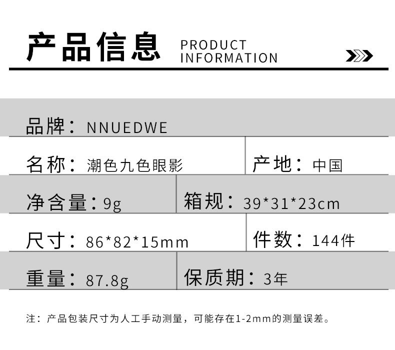 | Product Name | Nnuedwe trendy nine-color eye shadow palette |