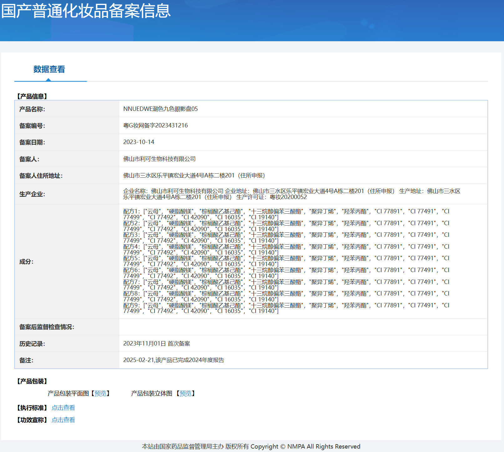 | Non-cosmetics filing certificate number | Guangdong g makeup net preparation word 2023431216 |