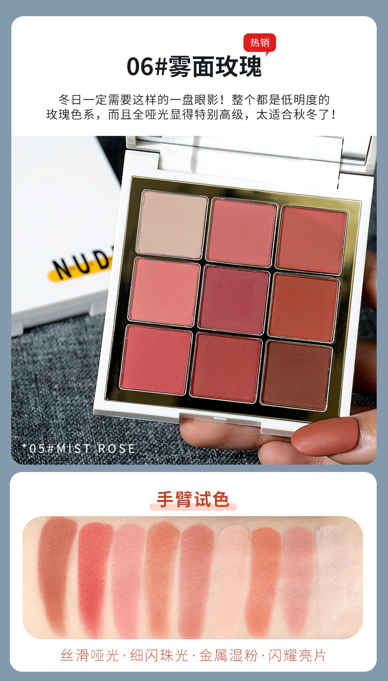 nnuedwe Lude nine-color eyeshadow plate earth color pearlescent matte cheap niche brand makeup ins eyeshadow