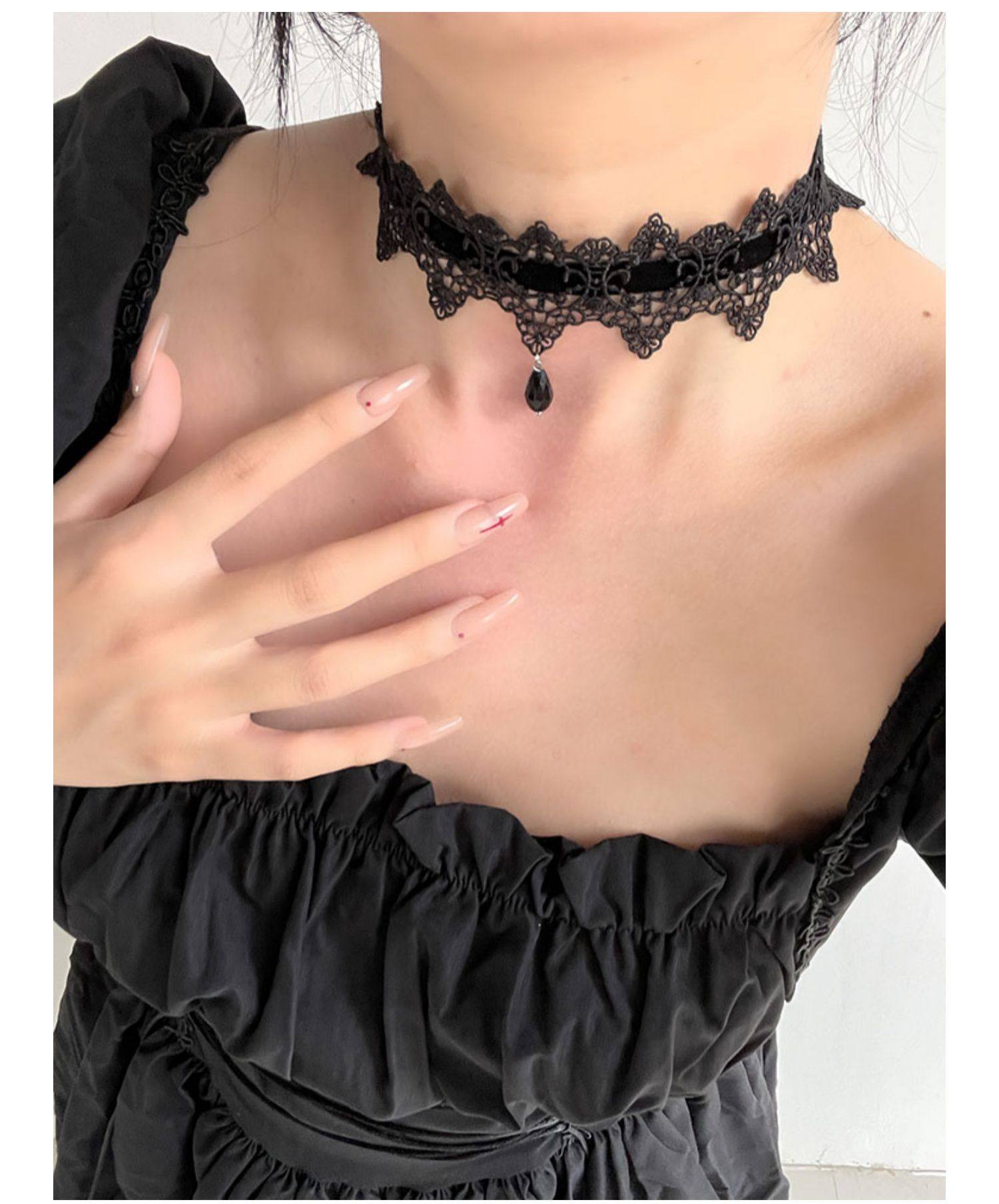 Black collar female neck strap ascetic lace malicious Halloween accessories makeup neck jewelry clavicle chain
