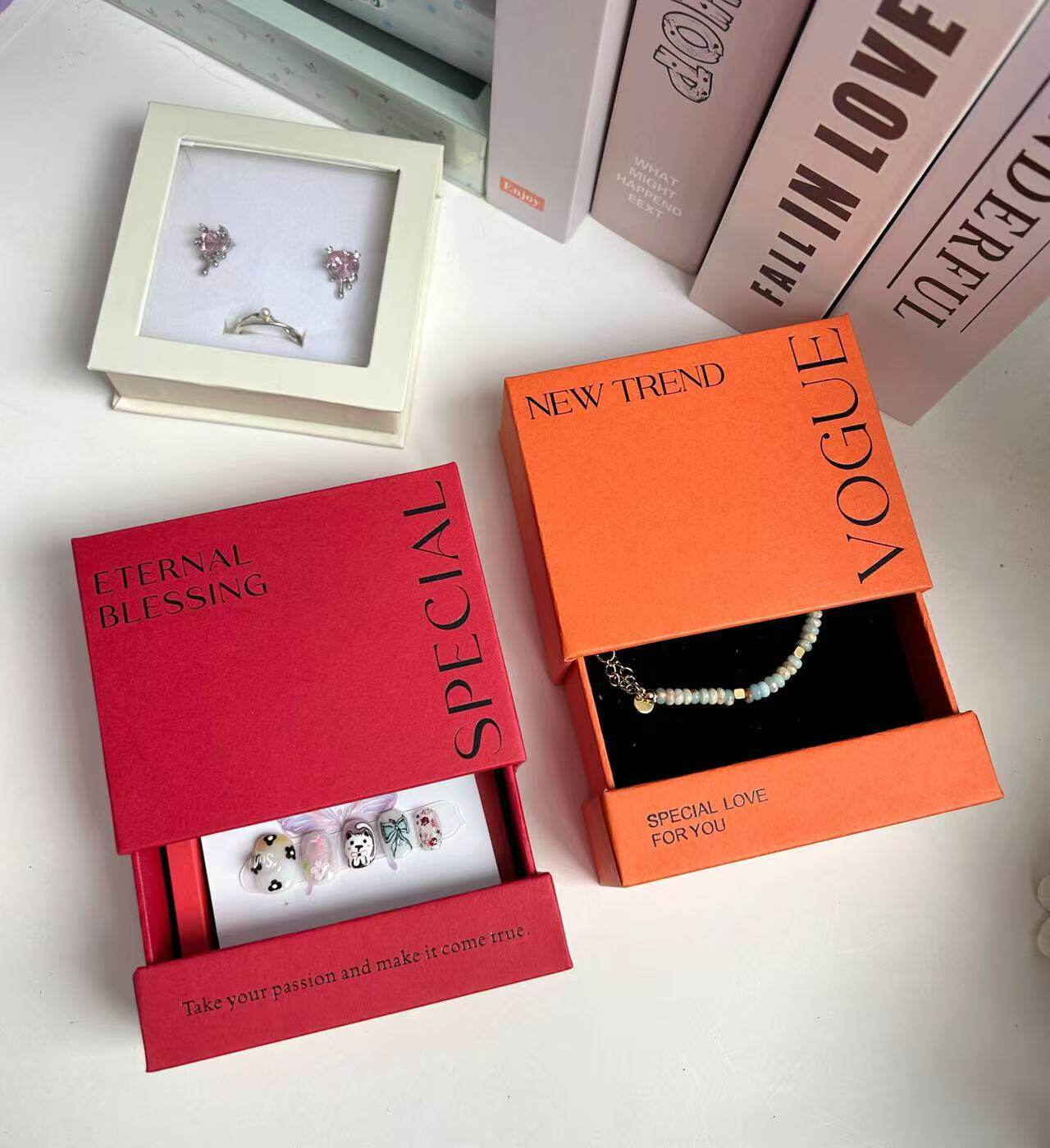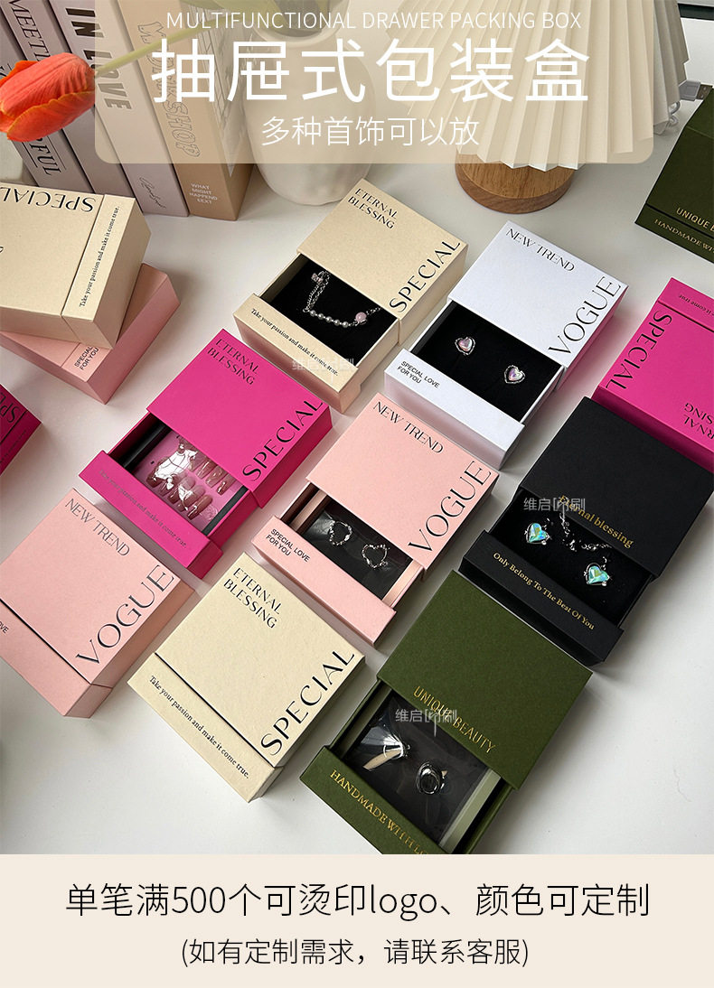 Ready-Made Cultural Toy Bracelets, Wearable Nail Display Packaging Boxes, High-End Necklaces, Jewelry Storage Drawer Boxes, Custom Logo