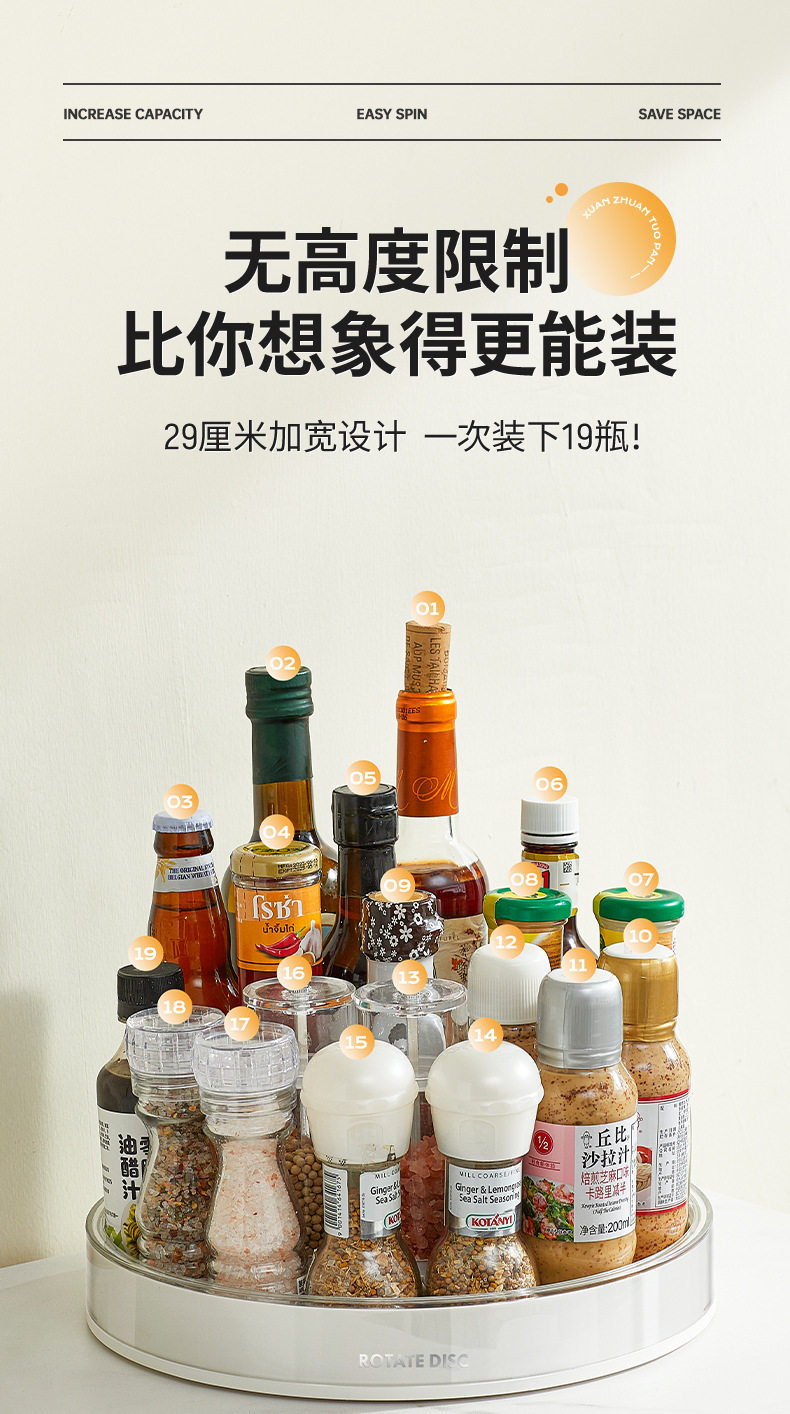 Rotating seasoning storage rack kitchen table multi-functional salt soy sauce bottle seasoning storage supplies household Complete Collection