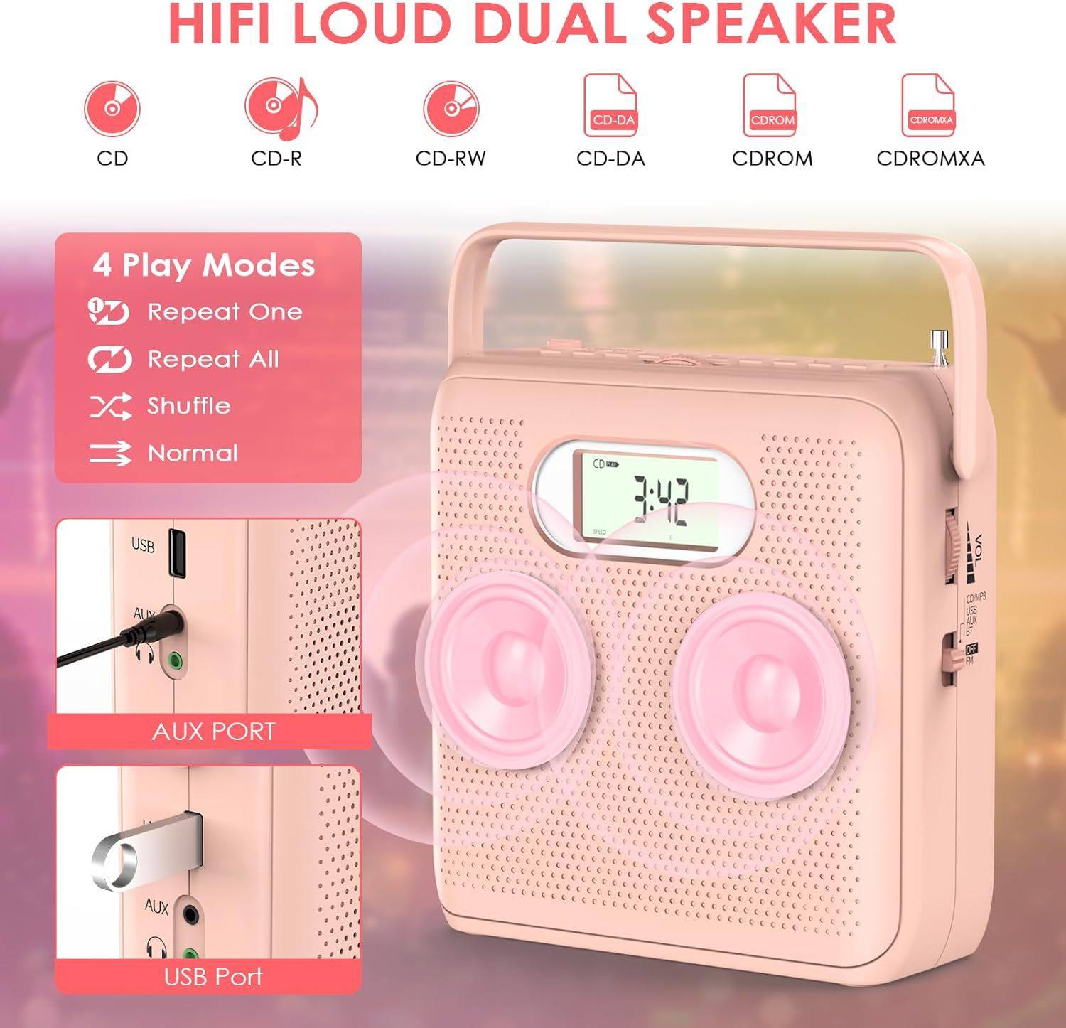 Pink Satchel Satchel Cd Player English Prenatal Education Cd Radio Cassette Recorder All-In-One Machine Super Stereo