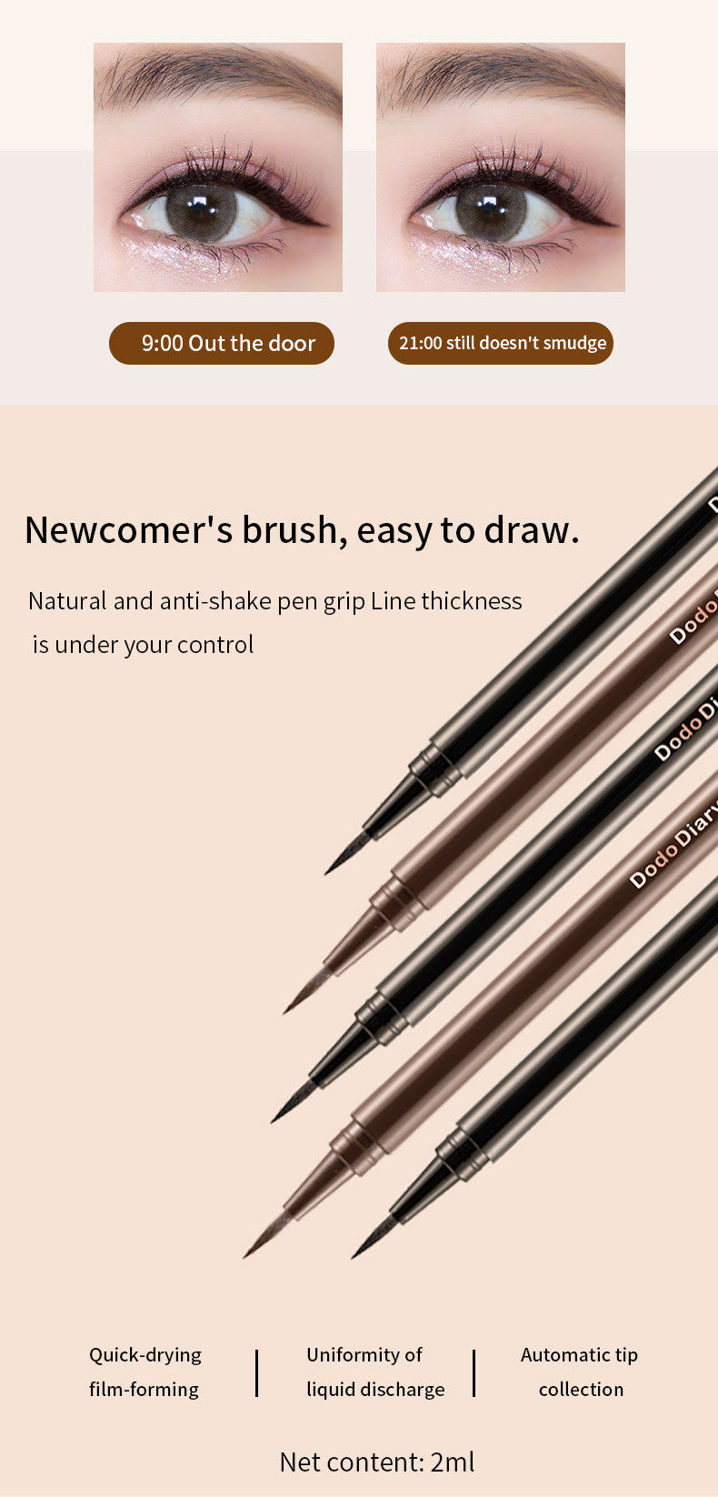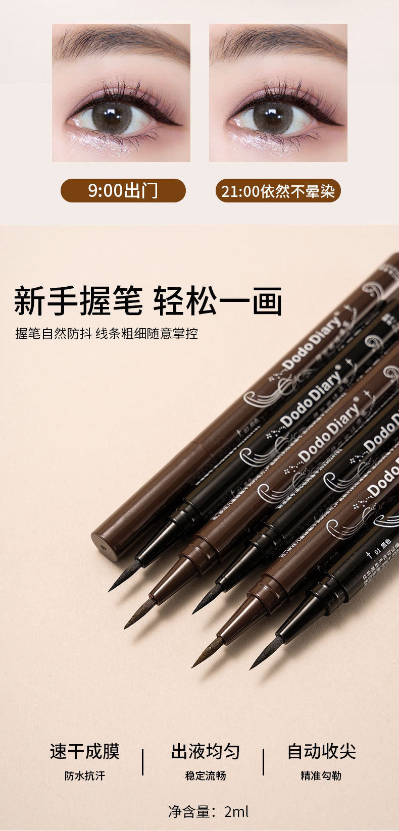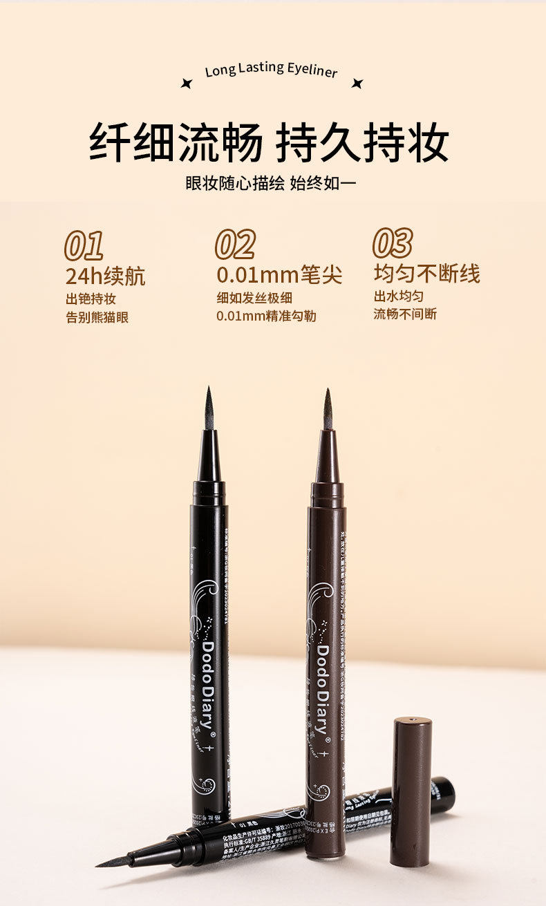 Dodiary Eyeliner Liquid Pen Ultra-Fine Women's Non-Smudge Waterproof Black Brown Cross-Border Exclusive Supply