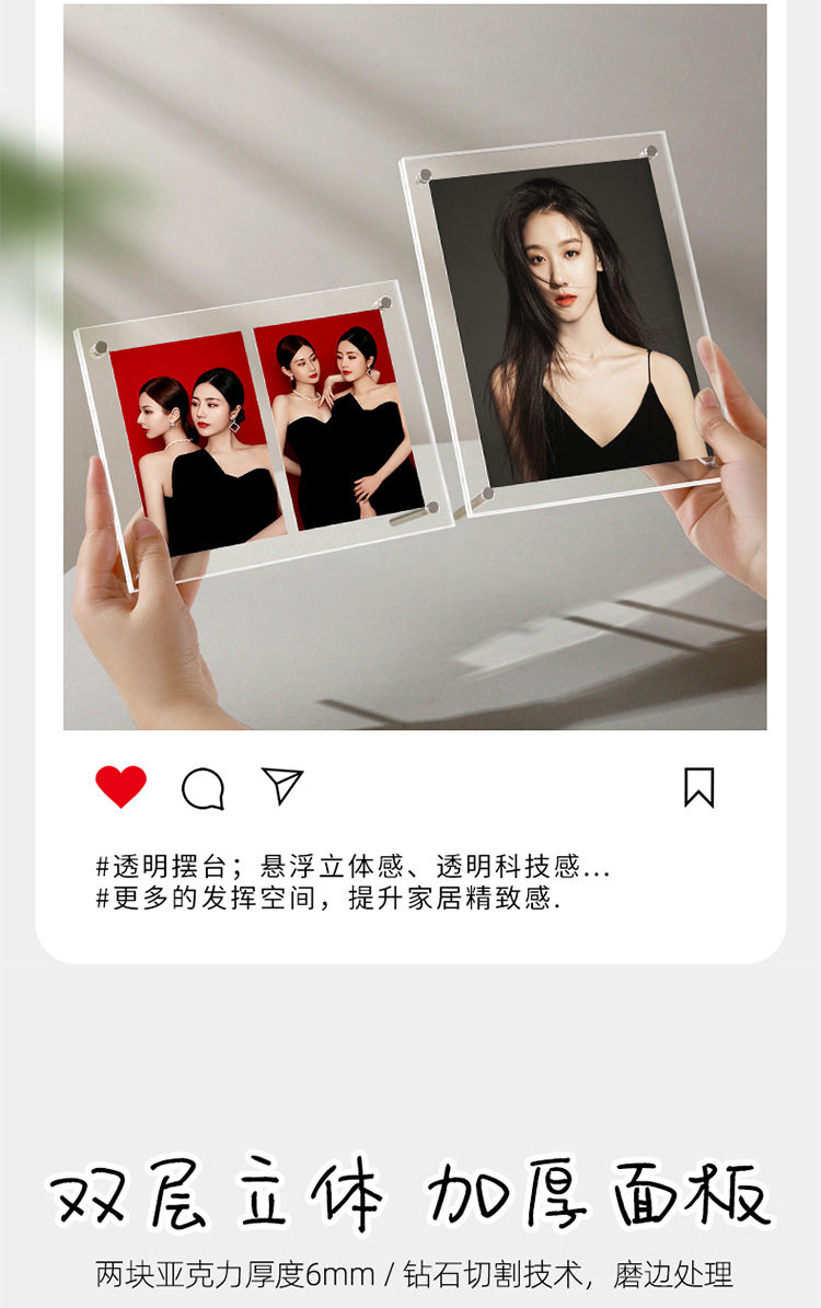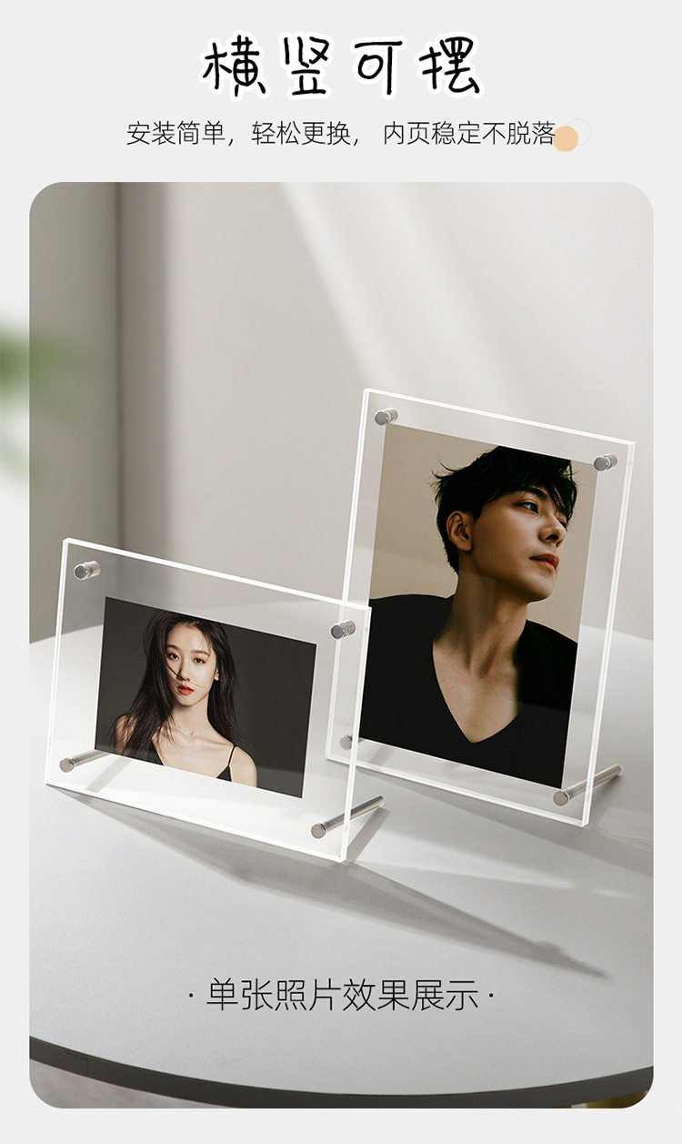Transparent Magnetic Acrylic Photo Frame, Various Sizes of Ornaments, Photo Card, Desktop Table, Polaroid Stand, Advertising Display