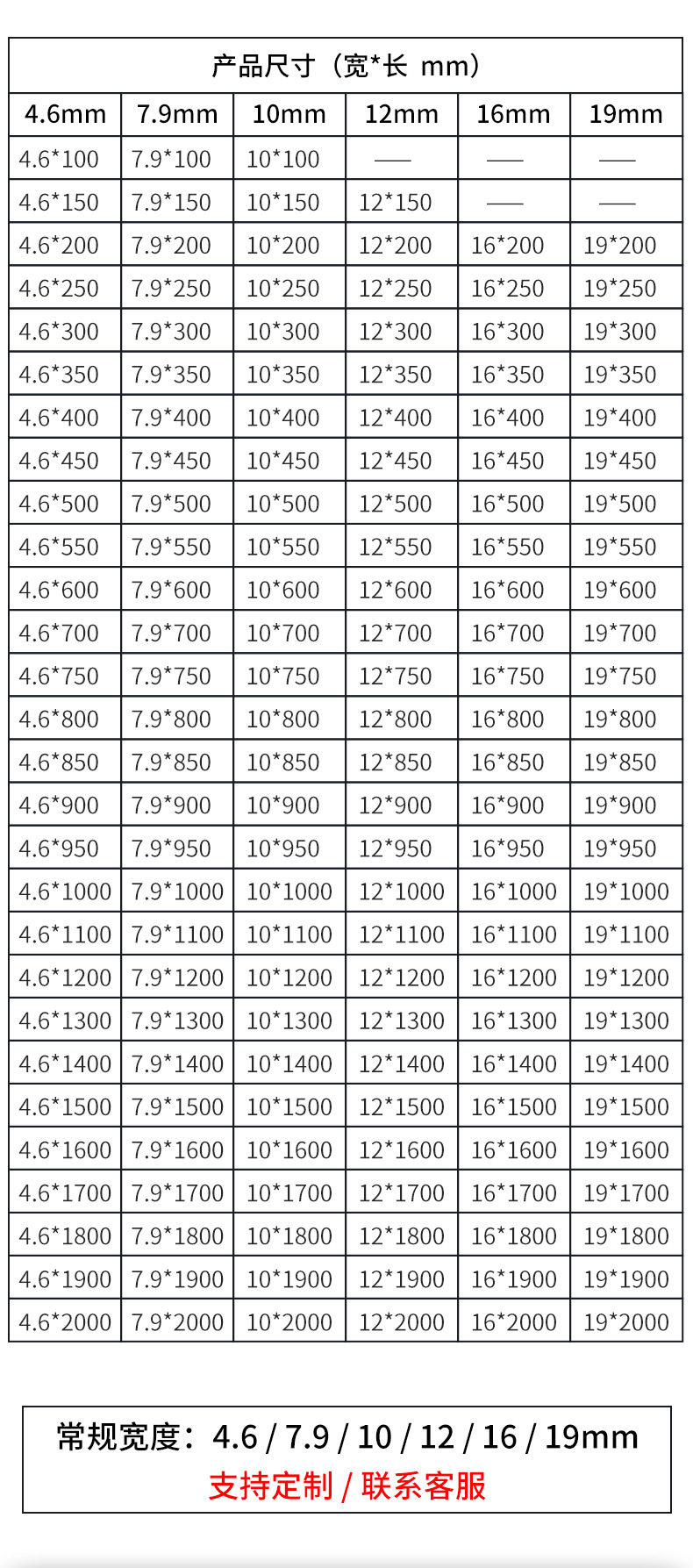 | Specification model | 4.6mm wide; 304 stainless steel; 100mm long 100 strips,4.6mm wide; 304 stainless steel; 150mm long 100 pieces,4.6mm wide; 304 stainless steel; 200mm long 100 strips,4.6mm wide; 304 stainless steel; 250mm long 100 strips,4.6mm wide; 304 stainless steel; 300mm long 100 strips,4.6mm wide; 304 stainless steel; 350mm long 100 strips,4.6mm wide; 304 stainless steel; 400mm long 100 pieces,4.6mm wide; 304 stainless steel; 450mm long 100 strips,4.6mm wide; 304 stainless steel; 500mm long 100 strips,4.6mm wide; 304 stainless steel; 550mm long 100 strips,4.6mm wide; 304 stainless steel; 600mm long 100 strips,4.6mm wide; 304 stainless steel; 650mm long 100 strips,4.6mm wide; 304 stainless steel; 700mm long 100 strips,4.6mm wide; 304 stainless steel; 750mm long 100 strips,4.6mm wide; 304 stainless steel; 800mm long 100 strips,4.6mm wide; 304 stainless steel; 850mm long 100 strips,4.6mm wide; 304 stainless steel; 900mm long 100 strips,4.6mm wide; 304 stainless steel; 950mm long 100 strips,4.6mm wide; 304 stainless steel; 1000mm long 100 pieces,4.6mm wide; 304 stainless steel; 1100mm long 100 strips,4.6mm wide; 304 stainless steel; 1200mm long 100 strips,4.6mm wide; 304 stainless steel; 1300mm long 100 strips,4.6mm wide; 304 stainless steel; 1400mm long 100 strips,4.6mm wide; 304 stainless steel; 1500mm long 100 strips,4.6mm wide; 304 stainless steel; 1600mm long 100 strips,4.6mm wide; 304 stainless steel; 1700mm long 100 strips,4.6mm wide; 304 stainless steel; 1800mm long 100 strips,4.6mm wide; 304 stainless steel; 1900mm long 100 strips,4.6mm wide; 304 stainless steel; 2000mm long 100 strips,7.9mm wide; 304 stainless steel; 100mm long 100 strips,7.9mm wide; 304 stainless steel; 150mm long 100 pieces,7.9mm wide; 304 stainless steel; 200mm long 100 strips,7.9mm wide; 304 stainless steel; 250mm long 100 strips,7.9mm wide; 304 stainless steel; 300mm long 100 pieces,7.9mm wide; 304 stainless steel; 350mm long 100 strips,7.9mm wide; 304 stainless steel; 400mm long 100 pieces,7.9mm wide; 304 stainless steel; 450mm long 100 strips,7.9mm wide; 304 stainless steel; 500mm long 100 strips,7.9mm wide; 304 stainless steel; 550mm long 100 strips,7.9mm wide; 304 stainless steel; 600mm long 100 strips,7.9mm wide; 304 stainless steel; 650mm long 100 strips,7.9mm wide; 304 stainless steel; 700mm long 100 strips,7.9mm wide; 304 stainless steel; 750mm long 100 strips,7.9mm wide; 304 stainless steel; 800mm long 100 pieces,7.9mm wide; 304 stainless steel; 850mm long 100 strips,7.9mm wide; 304 stainless steel; 900mm long 100 strips,7.9mm wide; 304 stainless steel; 950mm long 100 strips,7.9mm wide; 304 stainless steel; 1000mm long 100 pieces,7.9mm wide; 304 stainless steel; 1100mm long 100 strips,7.9mm wide; 304 stainless steel; 1200mm long 100 strips,7.9mm wide; 304 stainless steel; 1300mm long 100 strips,7.9mm wide; 304 stainless steel; 1400mm long 100 strips,7.9mm wide; 304 stainless steel; 1500mm long 100 strips,7.9mm wide; 304 stainless steel; 1600mm long 100 strips,7.9mm wide; 304 stainless steel; 1700mm long 100 strips,7.9mm wide; 304 stainless steel; 1800mm long 100 strips,7.9mm wide; 304 stainless steel; 1900mm long 100 strips,7.9mm wide; 304 stainless steel; 2000mm long 100 strips,10mm wide; 304 stainless steel; 100mm long 100 strips,10mm wide; 304 stainless steel; 150mm long 100 strips,10mm wide; 304 stainless steel; 200mm long 100 strips,10mm wide; 304 stainless steel; 250mm long 100 strips,10mm wide; 304 stainless steel; 300mm long 100 strips,10mm wide; 304 stainless steel; 350mm long 100 strips,10mm wide; 304 stainless steel; 400mm long 100 pieces,10mm wide; 304 stainless steel; 450mm long 100 strips,10mm wide; 304 stainless steel; 500mm long 100 strips,10mm wide; 304 stainless steel; 550mm long 100 strips,10mm wide; 304 stainless steel; 600mm long 100 strips,10mm wide; 304 stainless steel; 650mm long 100 strips,10mm wide; 304 stainless steel; 700mm long 100 strips,10mm wide; 304 stainless steel; 750mm long 100 strips,10mm wide; 304 stainless steel; 800mm long 100 strips,10mm wide; 304 stainless steel; 850mm long 100 strips,10mm wide; 304 stainless steel; 900mm long 100 strips,10mm wide; 304 stainless steel; 950mm long 100 strips,10mm wide; 304 stainless steel; 1000mm long 100 strips,10mm wide; 304 stainless steel; 1100mm long 100 strips,10mm wide; 304 stainless steel; 1200mm long 100 strips,10mm wide; 304 stainless steel; 1300mm long 100 strips,10mm wide; 304 stainless steel; 1400mm long 100 strips,10mm wide; 304 stainless steel; 1500mm long 100 strips,10mm wide; 304 stainless steel; 1600mm long 100 strips,10mm wide; 304 stainless steel; 1700mm long 100 strips,10mm wide; 304 stainless steel; 1800mm long 100 strips,10mm wide; 304 stainless steel; 1900mm long 100 strips,10mm wide; 304 stainless steel; 2000mm long 100 strips,12mm wide; 304 stainless steel; 100mm long 100 strips,12mm wide; 304 stainless steel; 150mm long 100 pieces,12mm wide; 304 stainless steel; 200mm long 100 strips,12mm wide; 304 stainless steel; 250mm long 100 strips,12mm wide; 304 stainless steel; 300mm long 100 pieces,12mm wide; 304 stainless steel; 350mm long 100 strips,12mm wide; 304 stainless steel; 400mm long 100 pieces,12mm wide; 304 stainless steel; 450mm long 100 strips,12mm wide; 304 stainless steel; 500mm long 100 strips,12mm wide; 304 stainless steel; 550mm long 100 strips,12mm wide; 304 stainless steel; 600mm long 100 strips,12mm wide; 304 stainless steel; 650mm long 100 strips,12mm wide; 304 stainless steel; 700mm long 100 pieces,12mm wide; 304 stainless steel; 750mm long 100 strips,12mm wide; 304 stainless steel; 800mm long 100 pieces,12mm wide; 304 stainless steel; 850mm long 100 strips,12mm wide; 304 stainless steel; 900mm long 100 pieces,12mm wide; 304 stainless steel; 950mm long 100 strips,12mm wide; 304 stainless steel; 1000mm long 100 pieces,12mm wide; 304 stainless steel; 1100mm long 100 strips,12mm wide; 304 stainless steel; 1200mm long 100 strips,12mm wide; 304 stainless steel; 1300mm long 100 st