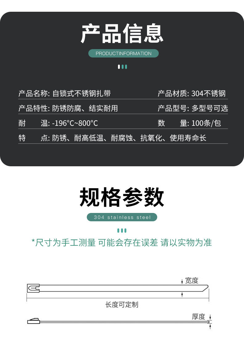 | Item number | 304 stainless steel cable tie 19mm |