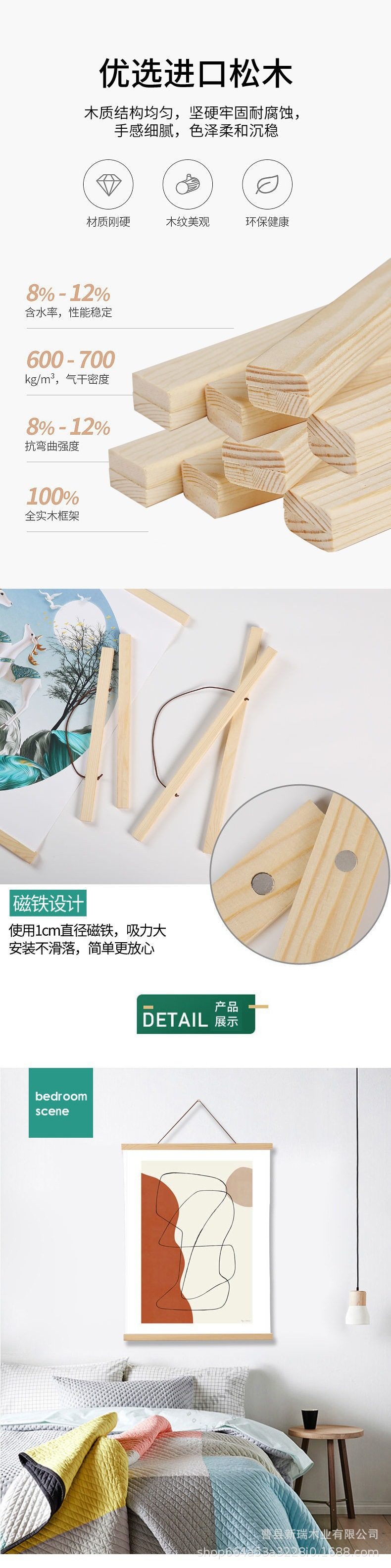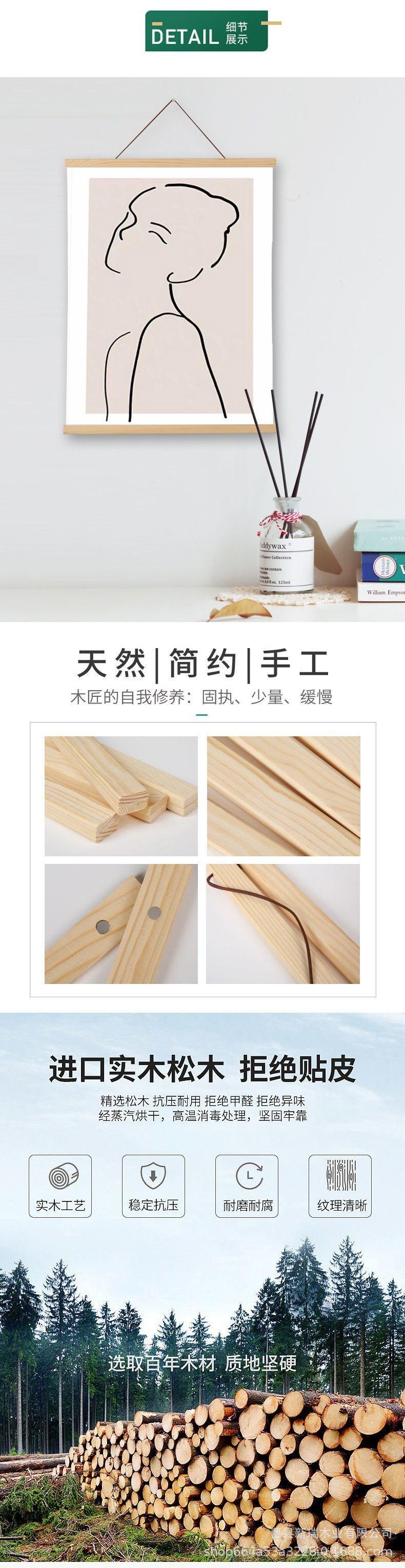 Factory supply solid wood poster clip hanging picture clip INS Nordic style painting core magnet canvas photo frame