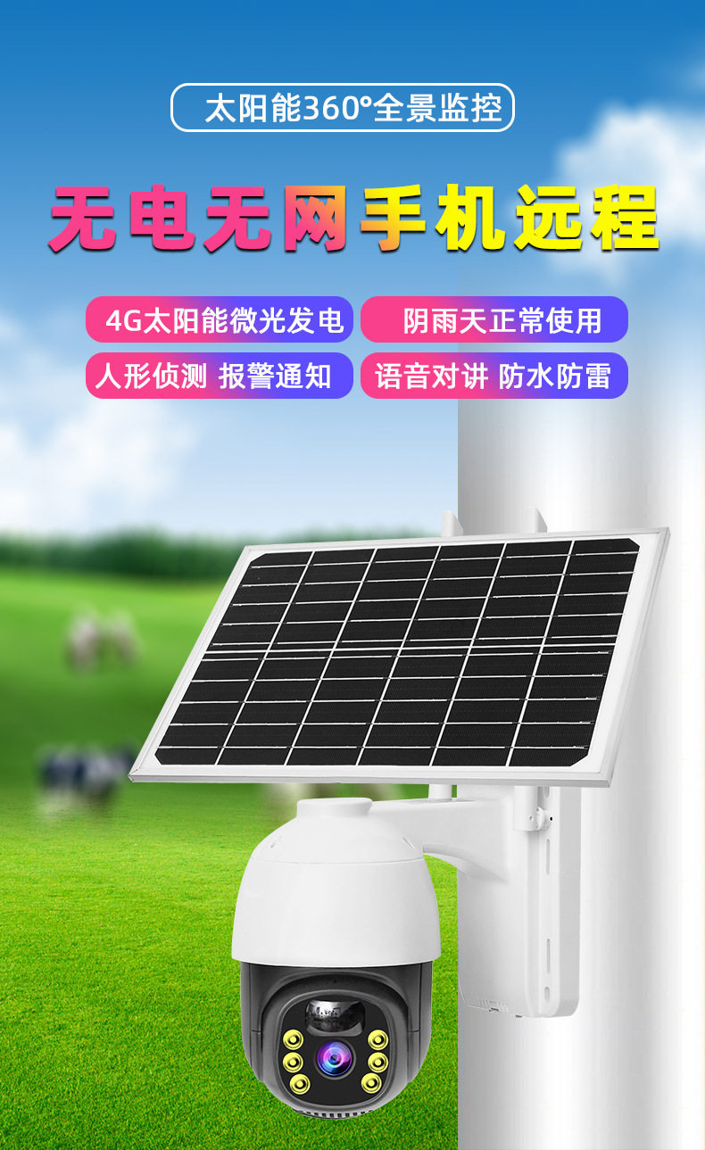 High-Definition Home Monitor with Night Vision Solar Surveillance Camera Outdoor 360-Degree Rotation Mobile Phone Remote Intercom