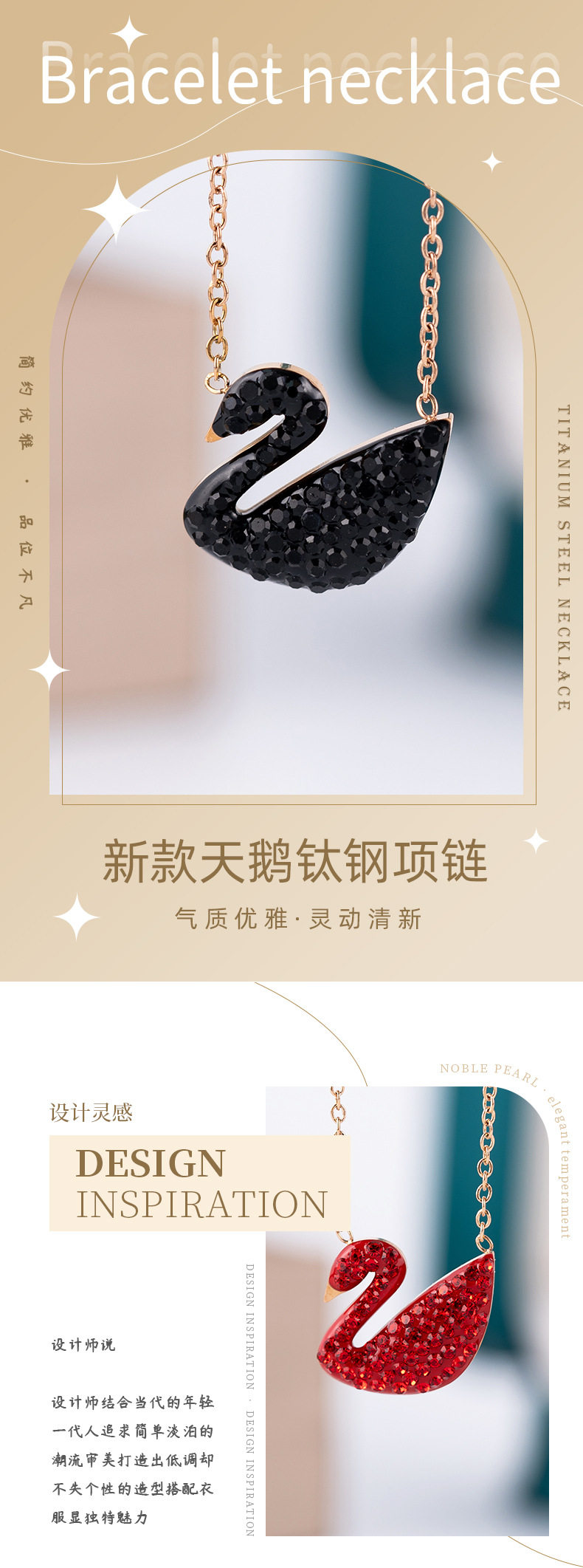 Black Swan Titanium Steel Necklace for Women, Niche Light Luxury Temperament Clavicle Chain, High-End Sweater Chain Jewelry