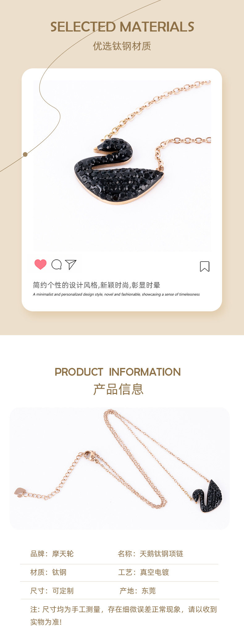 | Color | Rose gold chain black (long 18.6 * high 15.5mm),Rose gold chain (length 18.6 * height 15.5mm),Rose gold chain red (long 18.6 * high 15.5mm),Black Stud Earrings,Red stud earrings,white stud earrings,Gold Black Swan Necklace,GOLD WHITE SWAN NECKLACE,GOLD RED SWAN NECKLACE,Golden Deep Blue Sky Necklace,GOLD Pink Swan Necklace,GOLD CHAMPAGNE SWAN NECKLACE,Red Swan Steel Chain,White plus blue swan steel chain,white h necklace,red h necklace,Black H Necklace,orange h necklace,Rose Gold Black Necklace,Rose gold white necklace,Rose gold necklace,ROSE GOLD ROMAN NUMBERS NECKLACE,Rose Gold White Skirt Necklace,Rose Gold Red Skirt Necklace,Rose Gold Black Skirt Necklace,Love rose gold necklace,Gold Square Necklace,silver Square Necklace,Double-sided square necklace,Love Necklace,Golden Gourd Necklace,Rose Gold Gourd Necklace,Butterfly Necklace,Fuzi Necklace,Diamond Necklace,Gold gold ingot necklace,Rose Gold Diamond Clover Black Necklace,Rose gold diamond-encrusted clover red necklace |