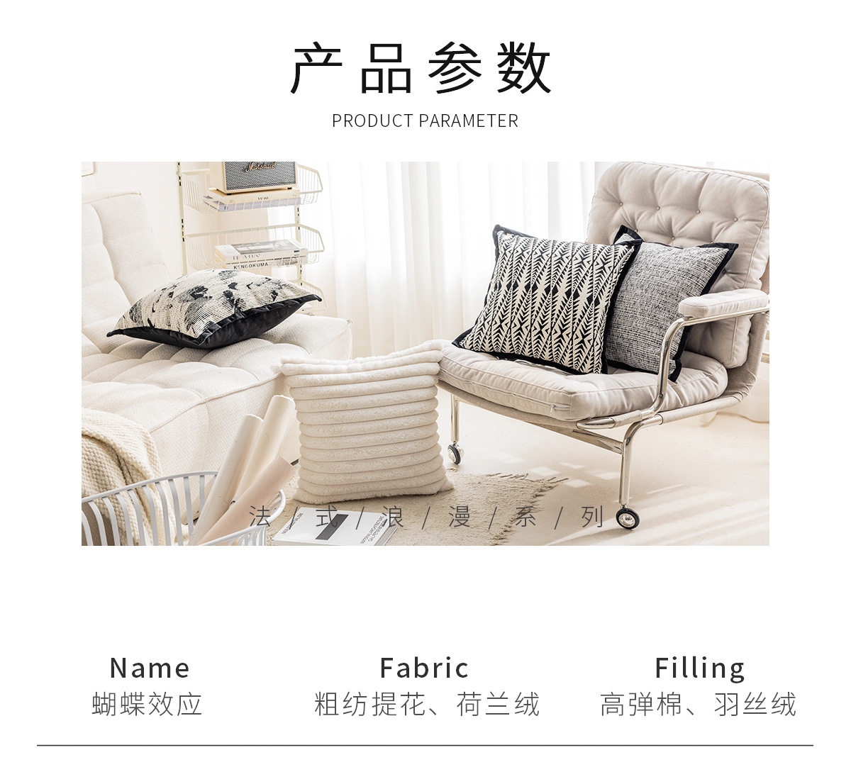 Light French sofa pillowcase ins style modern minimalist living room home pillow bedside cushion bed back pillow