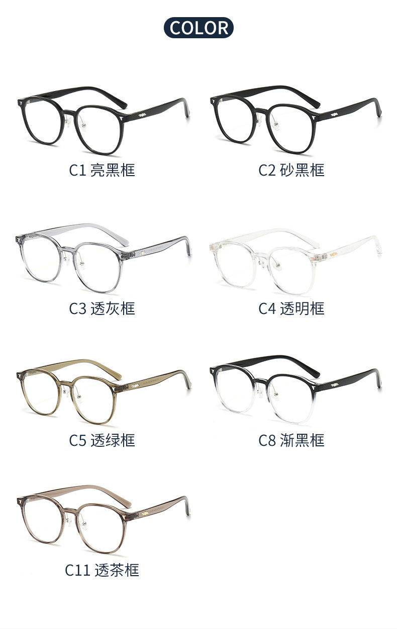 | Frame color | C1. bright black frame,C2.sand black frame,C3. Gray frame,C4. Transparent frame,C5. Olive green,C8. gradually black frame,C11. transparent tea frame |