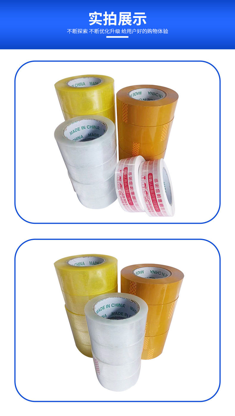 | Specifications and models | Transparent yellow * wide 1.0cm * thick 1.6cm * long 100(496 rolls/box) narrow tape,Transparent yellow * wide 1.2cm * thick 1.6cm * long 100(400 rolls/box) narrow tape,Transparent yellow * wide 1.5cm * thick 1.6cm * long 100(320 rolls/box) narrow tape,Transparent yellow * wide 1.8cm * thick 1.6cm * long 100(272 rolls/box) narrow tape,Transparent yellow * wide 2.4cm * thick 1.6cm * long 100(208 rolls/box) narrow tape,Transparent yellow * wide 3.6cm * thick 1.6cm * long 100(144 rolls/box) narrow tape,Transparent yellow * wide 4.5cm * thick 1.6cm * long 100(112 rolls/box),Transparent yellow * width 4.8cm * thickness 1.6cm * length 100(96 rolls/box),Transparent yellow * wide 5.5cm * thick 1.6cm * long 100(80 rolls/box),Transparent yellow * wide 6.0cm * thick 1.6cm * long 100(80 rolls/box),Beige * wide 1.0cm * thick 1.6cm * long 100(496 rolls/box) narrow tape,Beige * wide 1.2cm * thick 1.6cm * long 100(400 rolls/box) narrow tape,Beige * wide 1.5cm * thick 1.6cm * long 100(320 rolls/box) narrow tape,Beige * wide 1.8cm * thick 1.6cm * long 100(272 rolls/box) narrow tape,Beige * wide 2.4cm * thick 1.6cm * long 100(208 rolls/box) narrow tape,Beige * wide 3.6cm * thick 1.6cm * long 100(144 rolls/box) narrow tape,Beige * wide 4.5cm * thick 1.6cm * long 100(112 rolls/box),Beige * wide 4.8cm * thick 1.6cm * long 100(96 rolls/box),Beige * wide 5.5cm * thick 1.6cm * long 100(80 rolls/box),Beige * wide 6.0cm * thick 1.6cm * long 100(80 rolls/box),Transparent * width 1.0cm * thickness 1.6cm * length 100(496 rolls/box) narrow tape,Transmitter * width 1.2cm * thickness 1.6cm * length 100(400 rolls/box) narrow tape,Transparent * width 1.5cm * thickness 1.6cm * length 100(320 rolls/box) narrow tape,Transparent * width 1.8cm * thickness 1.6cm * length 100(272 rolls/box) narrow tape,Transparent * width 2.4cm * thickness 1.6cm * length 100(208 rolls/box) narrow tape,Translucent * width 3.6cm * thickness 1.6cm * length 100(144 rolls/box) narrow tape,Transparent understanding * width 4.5cm * thickness 1.6cm * length 100(112 rolls/box),Translucent understanding * width 4.8cm * thickness 1.6cm * length 100(96 rolls/box),Translucent * width 5.5cm * thickness 1.6cm * length 100(80 rolls/box),Translucent * width 6.0cm * thickness 1.6cm * length 100(80 rolls/box) |