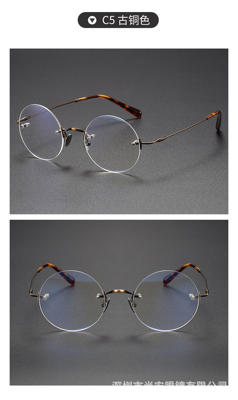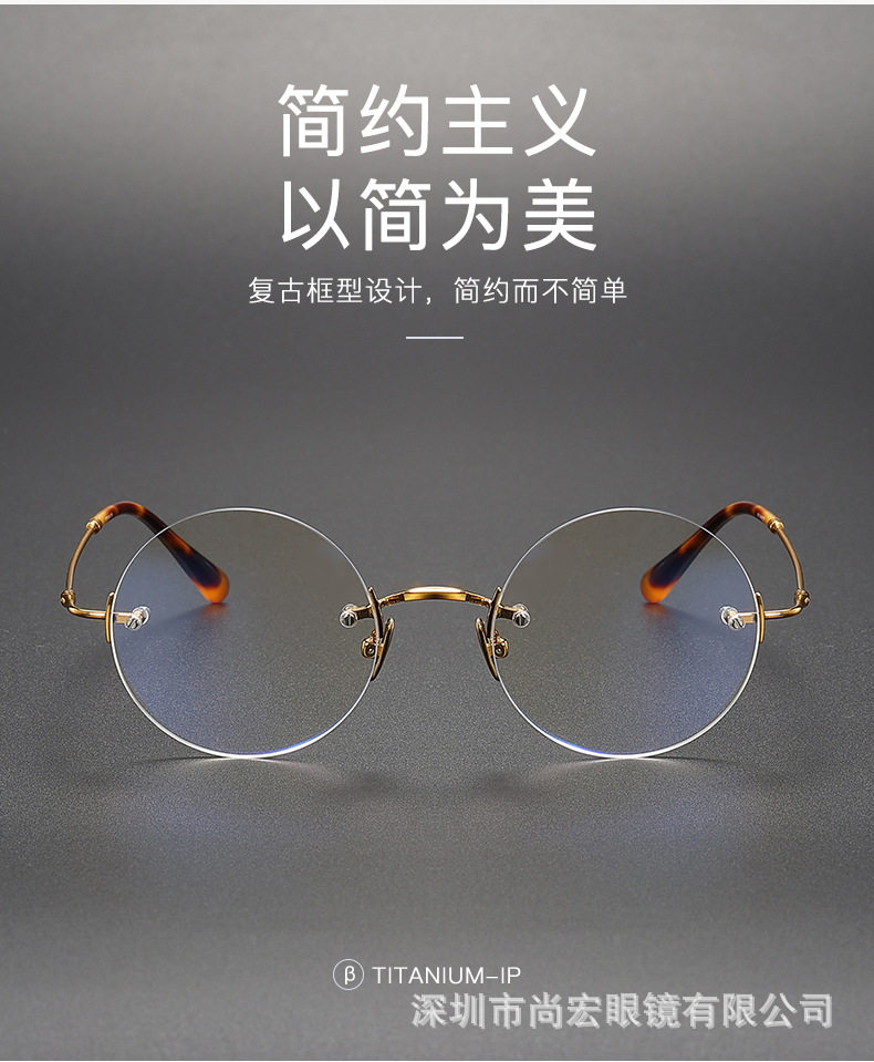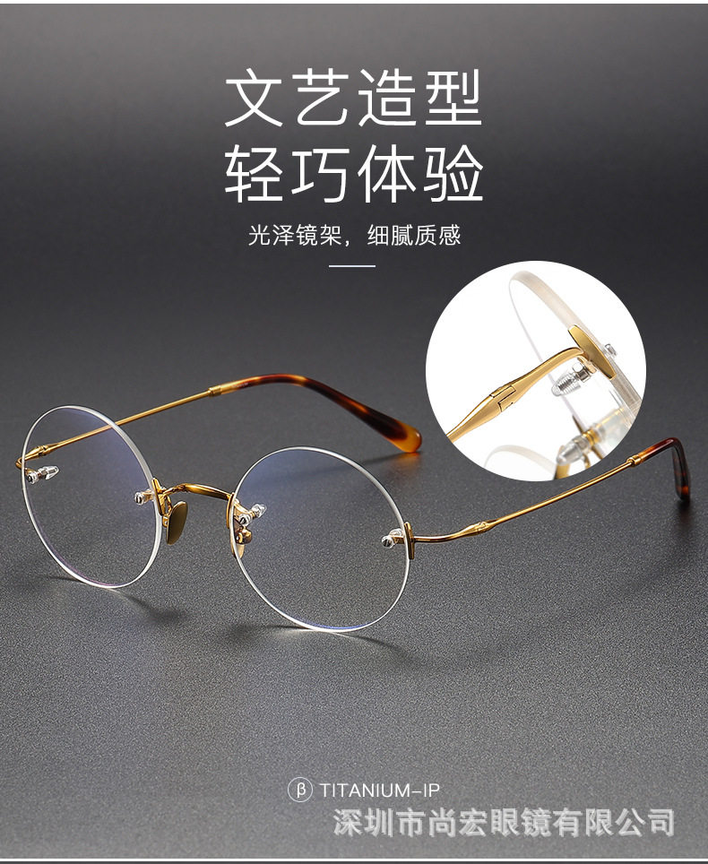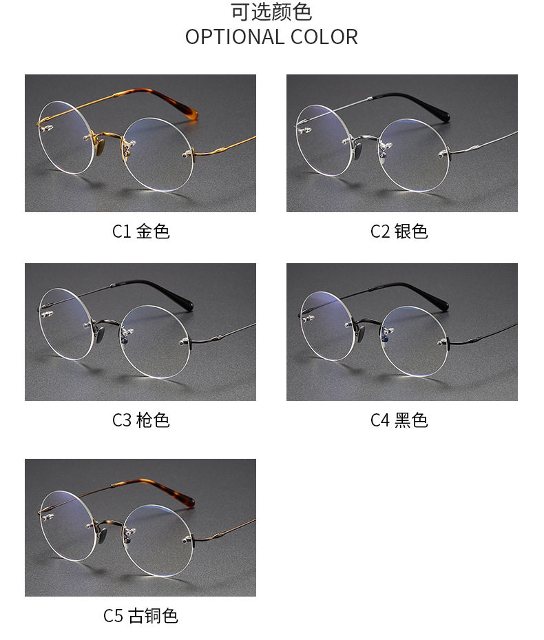 Jobs with Frameless Pure Titanium Glasses Frame ZY007 Myopia Retro Joker Round Plain Online Red Glasses Frame for Women
