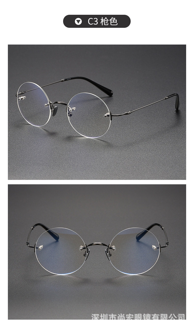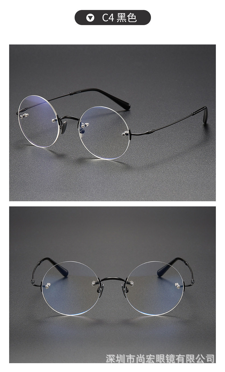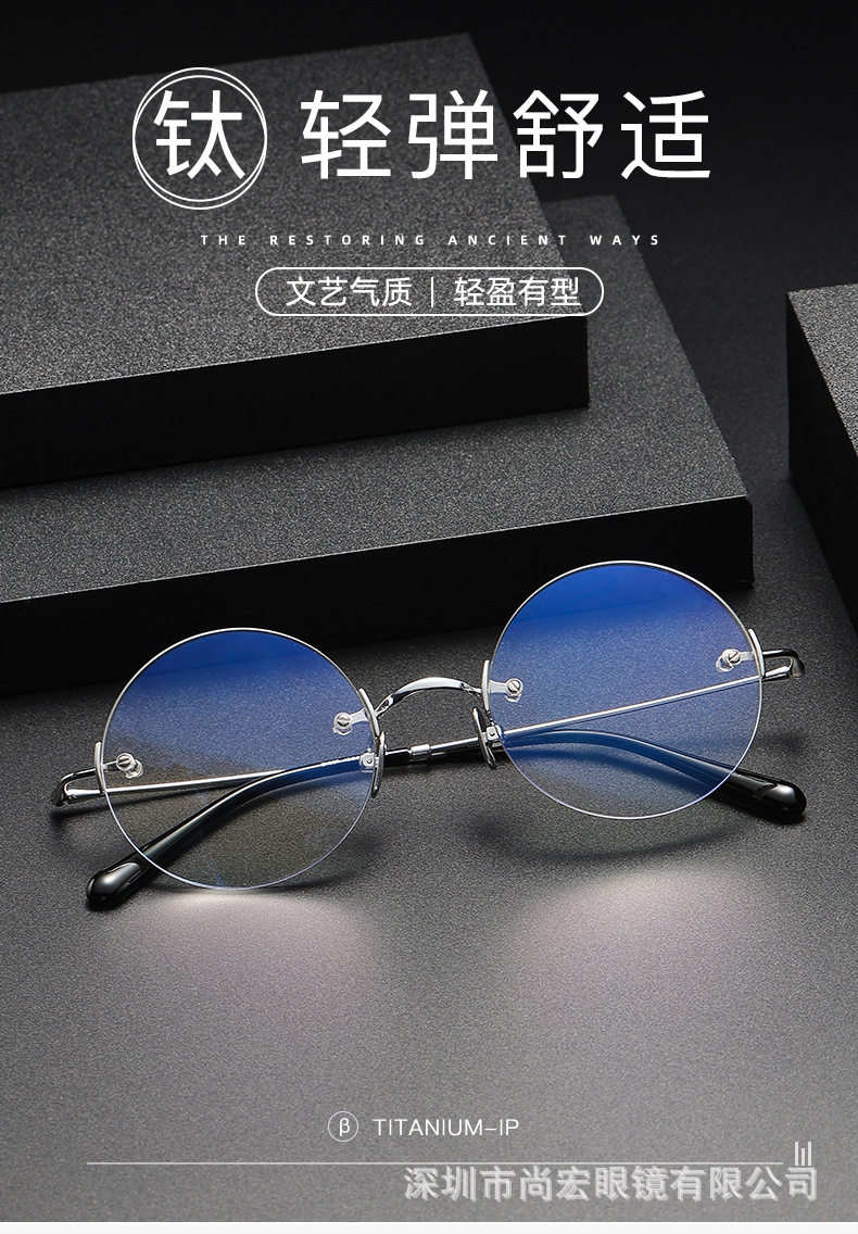 Jobs with Frameless Pure Titanium Glasses Frame ZY007 Myopia Retro Joker Round Plain Online Red Glasses Frame for Women