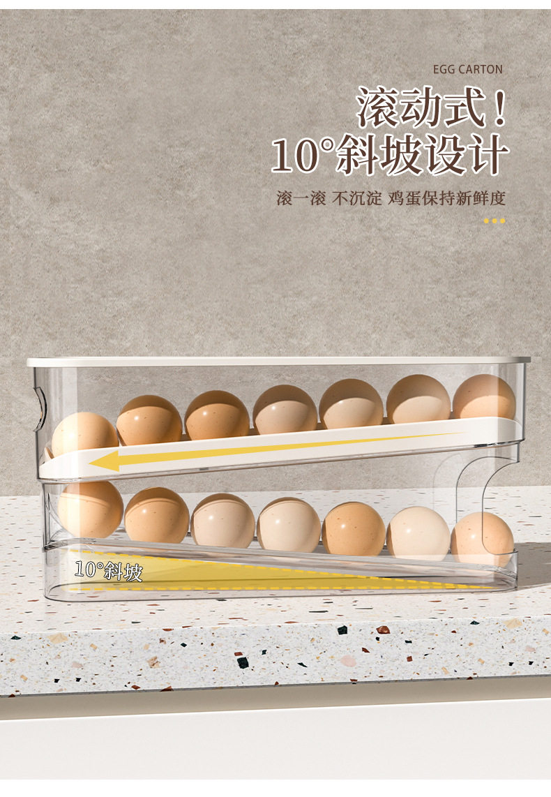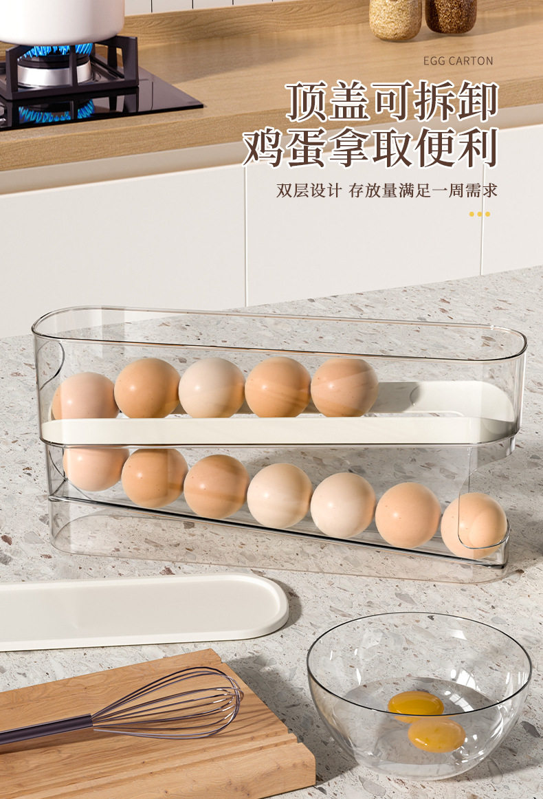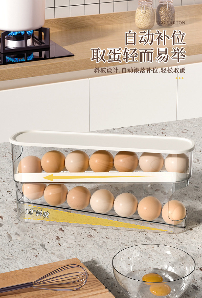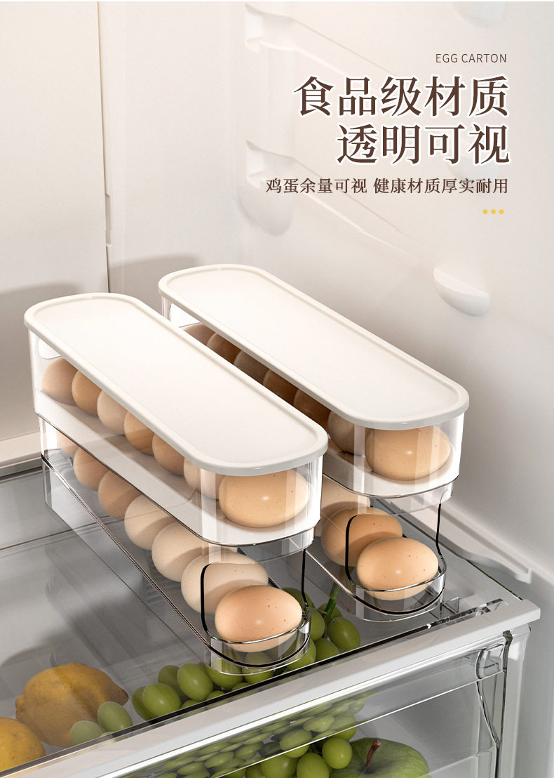 Egg Carton Storage for Refrigerator, Food-Grade Rolling Egg Rack, Kitchen Preservation Freezer Side Door Storage Box with Lid