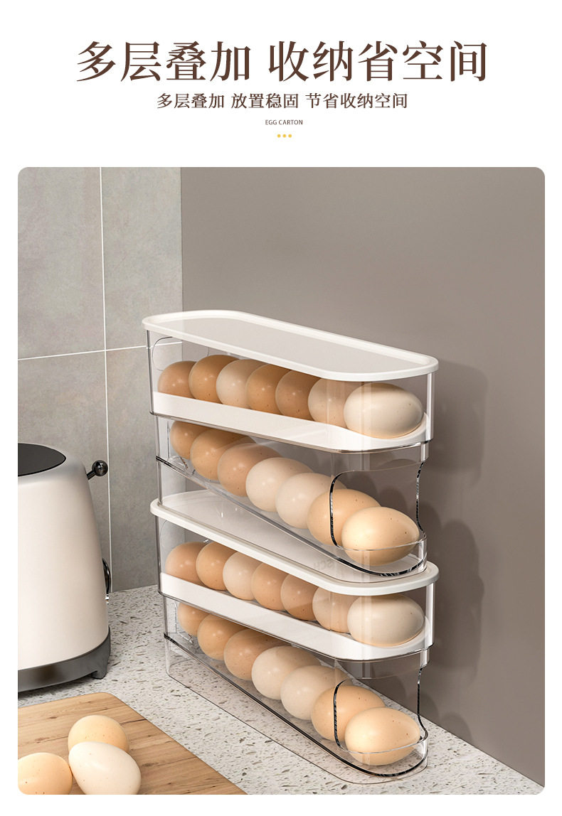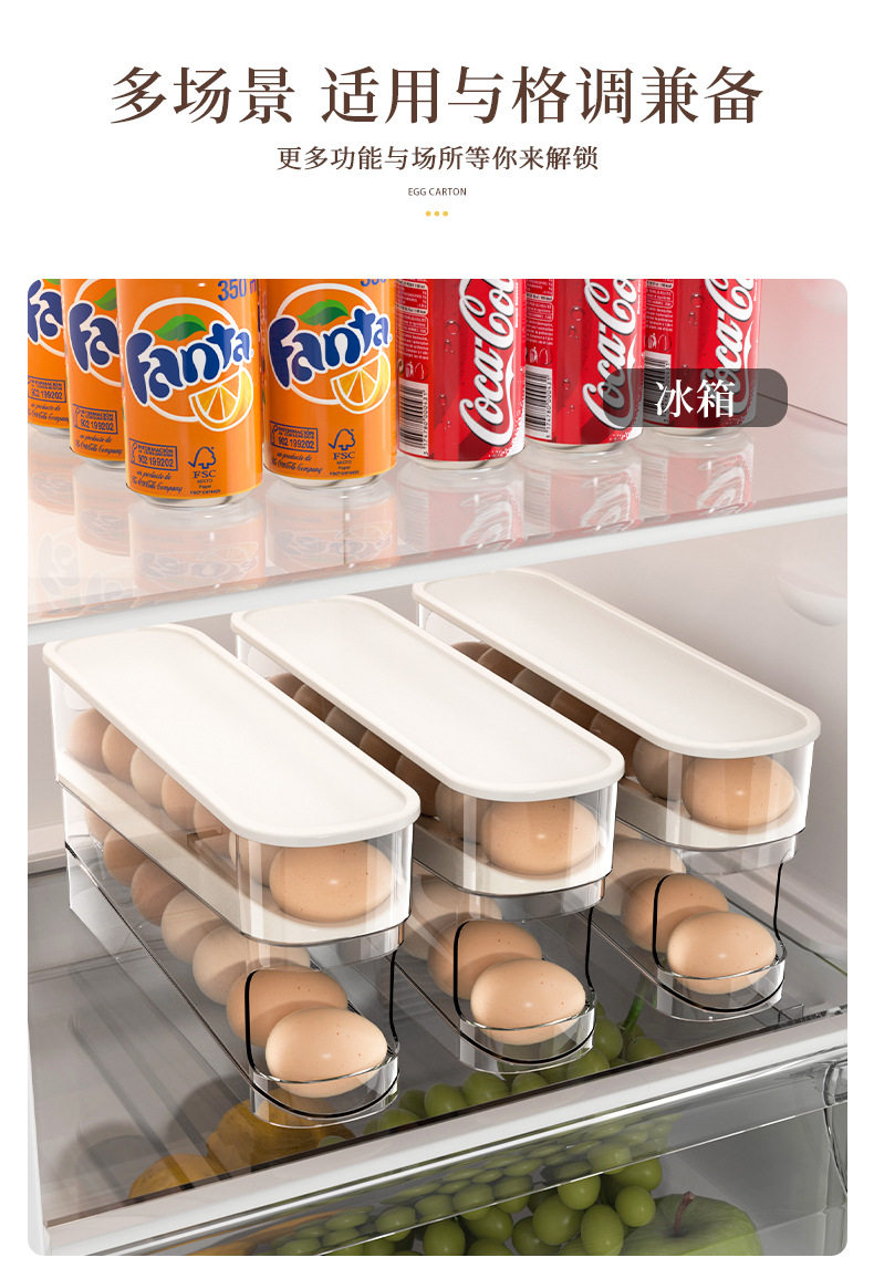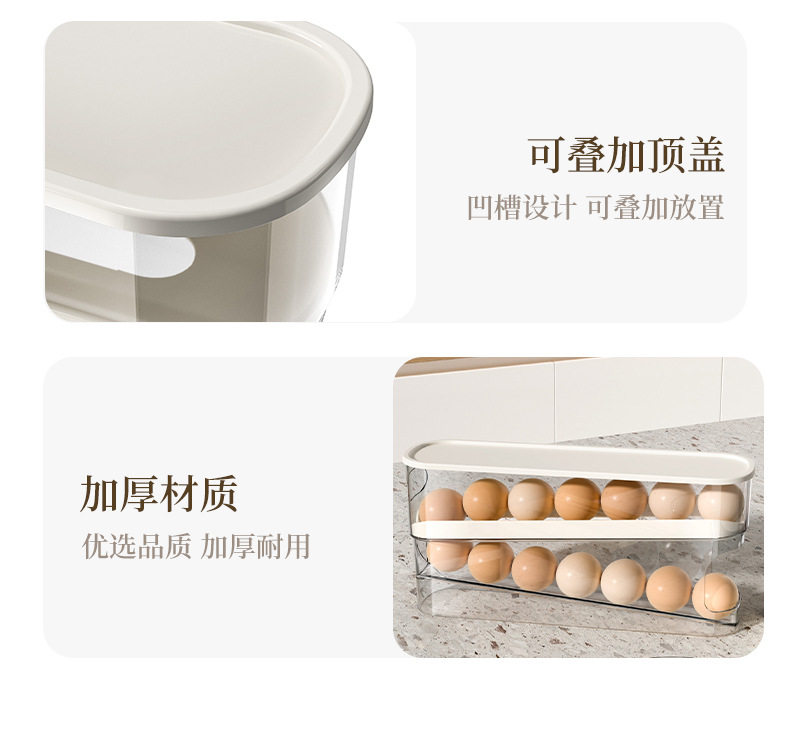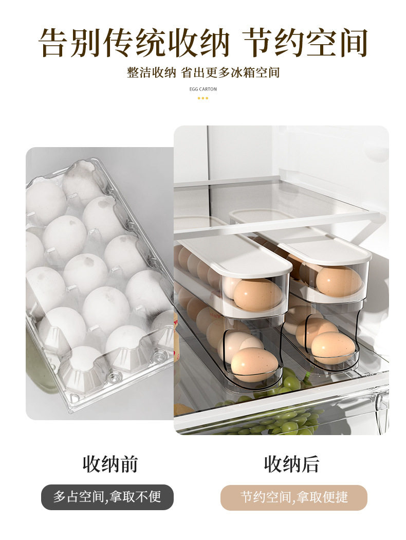 Egg Carton Storage for Refrigerator, Food-Grade Rolling Egg Rack, Kitchen Preservation Freezer Side Door Storage Box with Lid